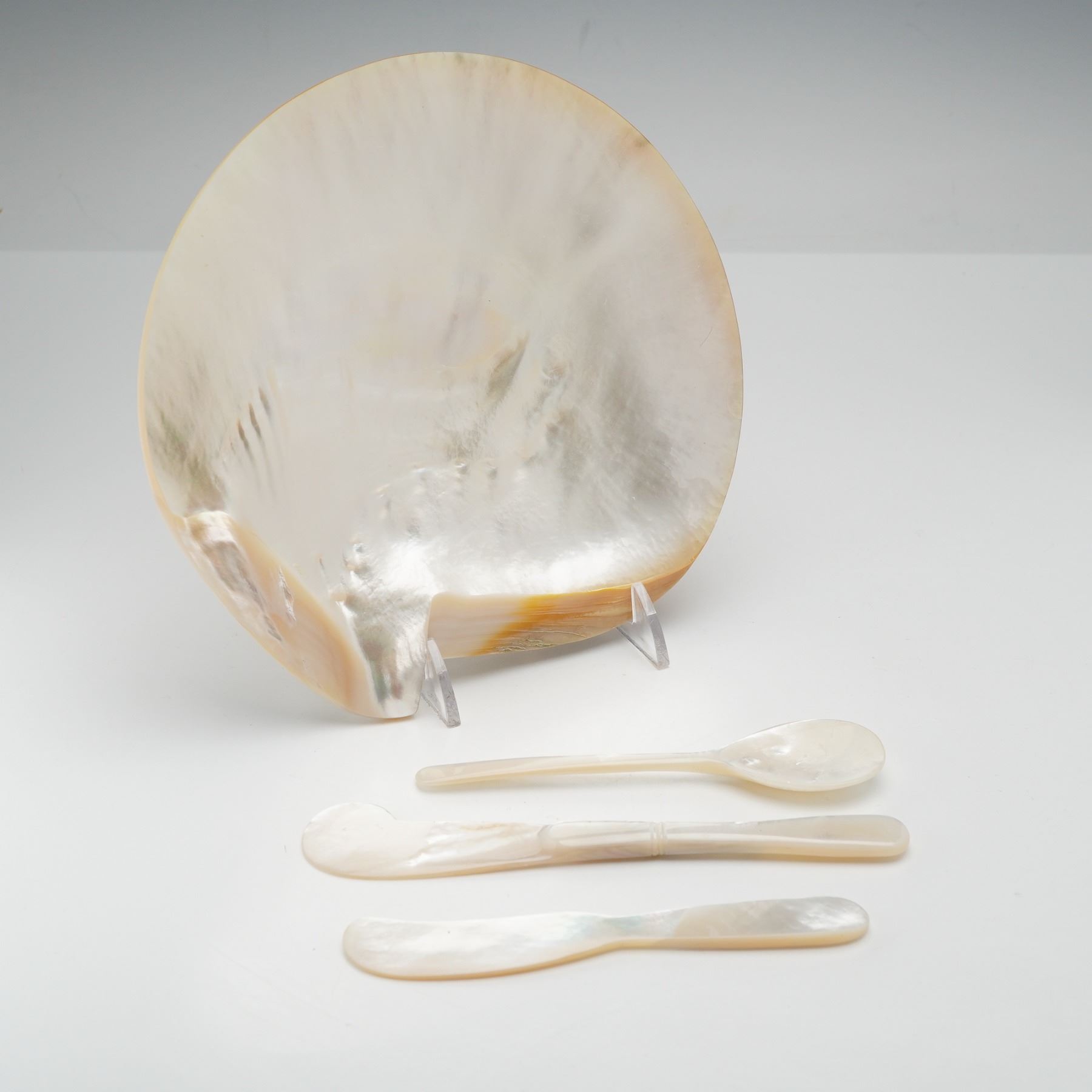 4pc Mother of Pearl Natural Shell Plate and Utensil Set