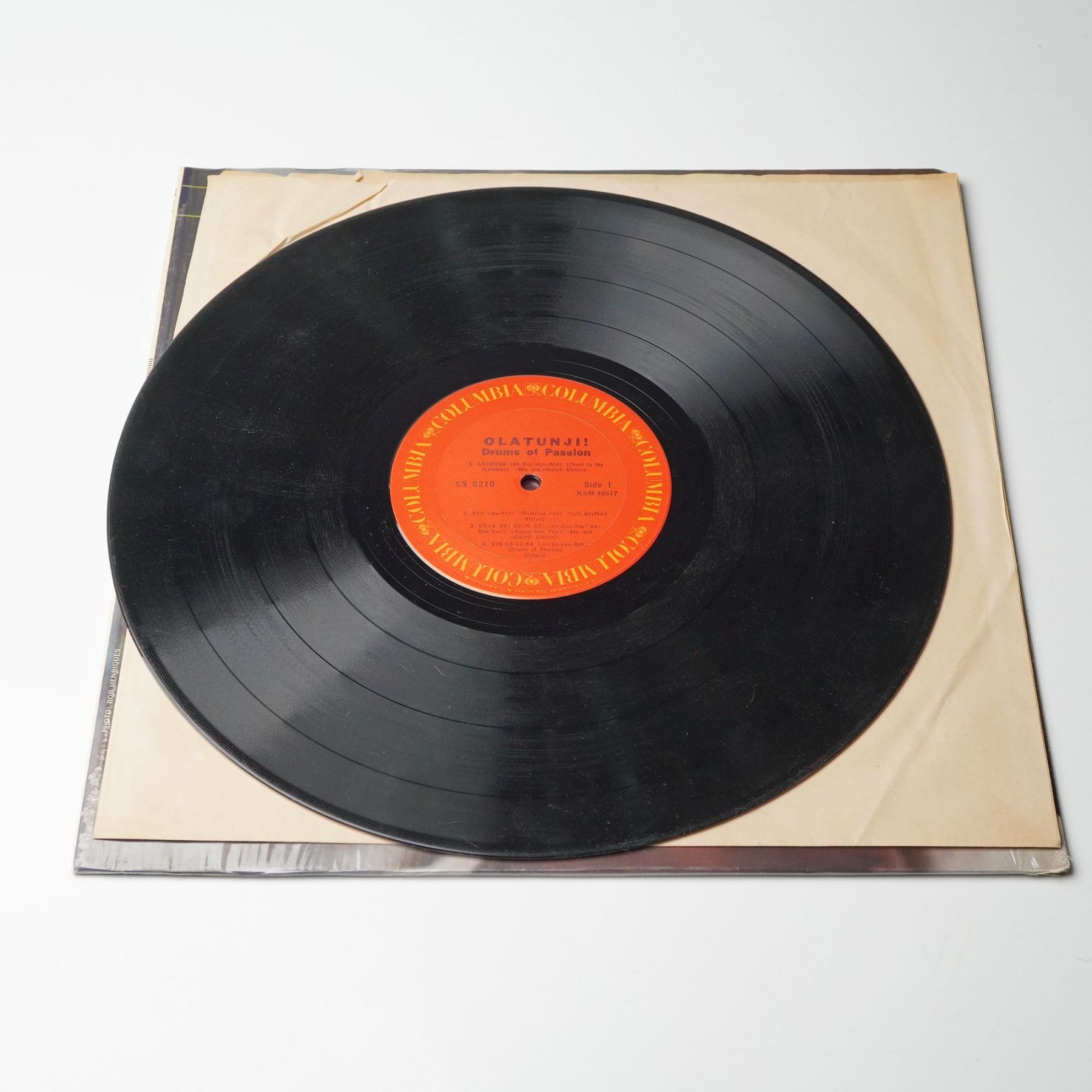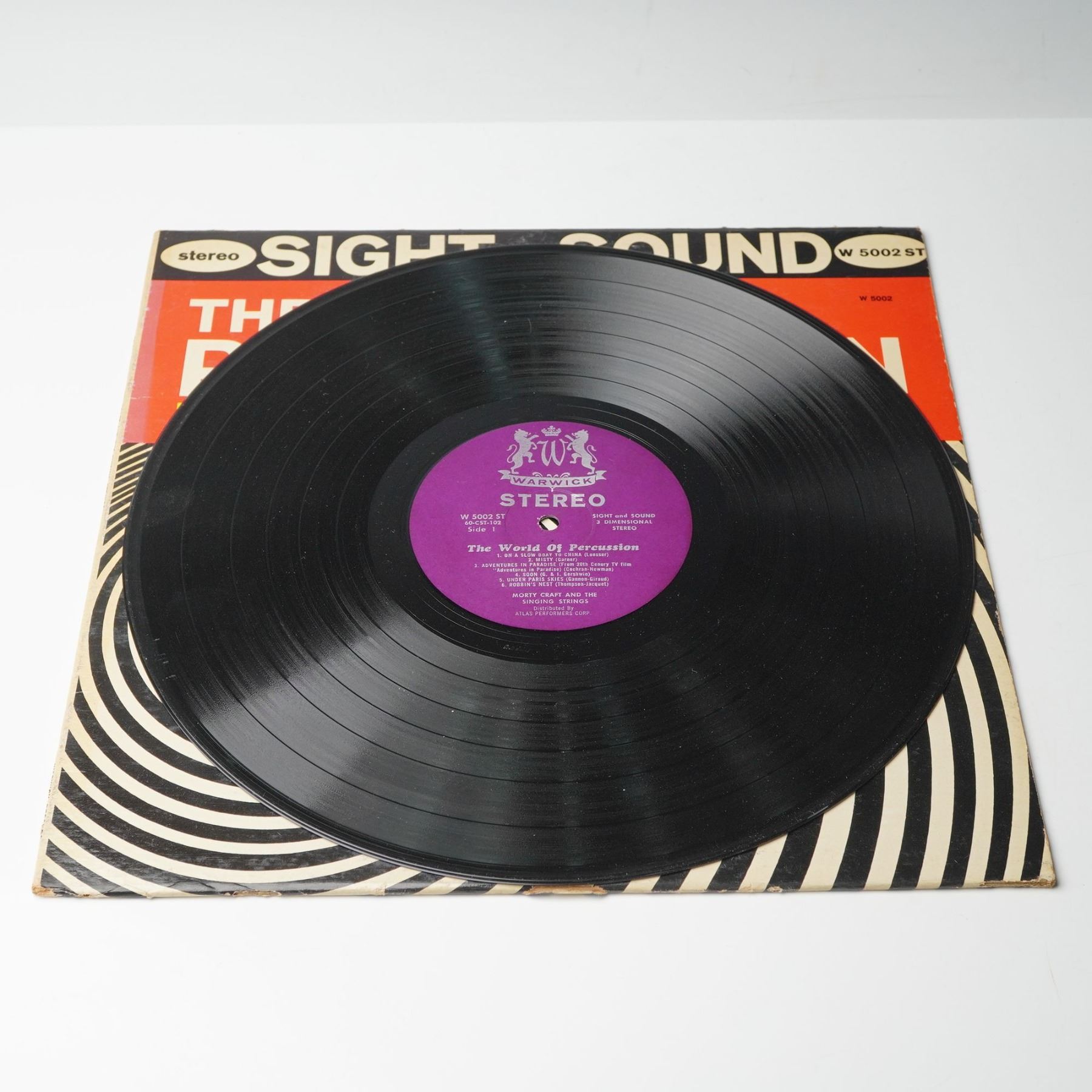 This 4-piece percussion record set includes a diverse mix of artists and styles. The set features Olatunji - Drums of Passion, The World of Percussion by Monty Craft and the Singing Strings, The World Within by Stix Hooper, and Orgy in Rhythm Volume Two by Art Blakey. Each record showcases unique percussion-driven compositions that span from African rhythms to jazz influences. All records are housed in their original covers.