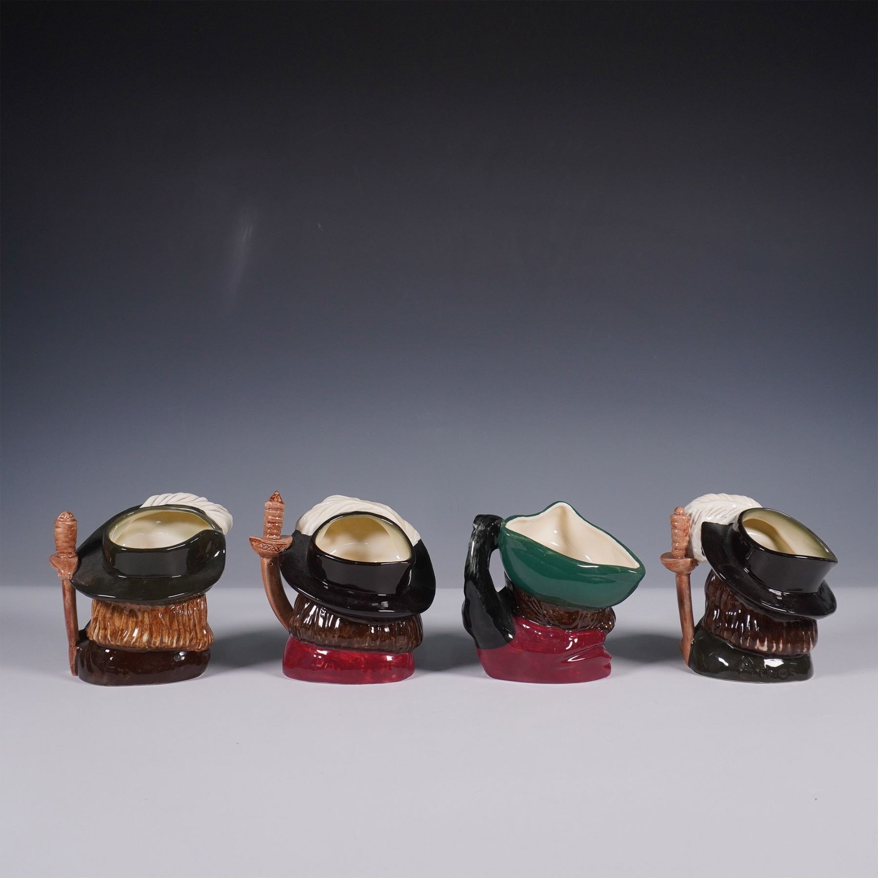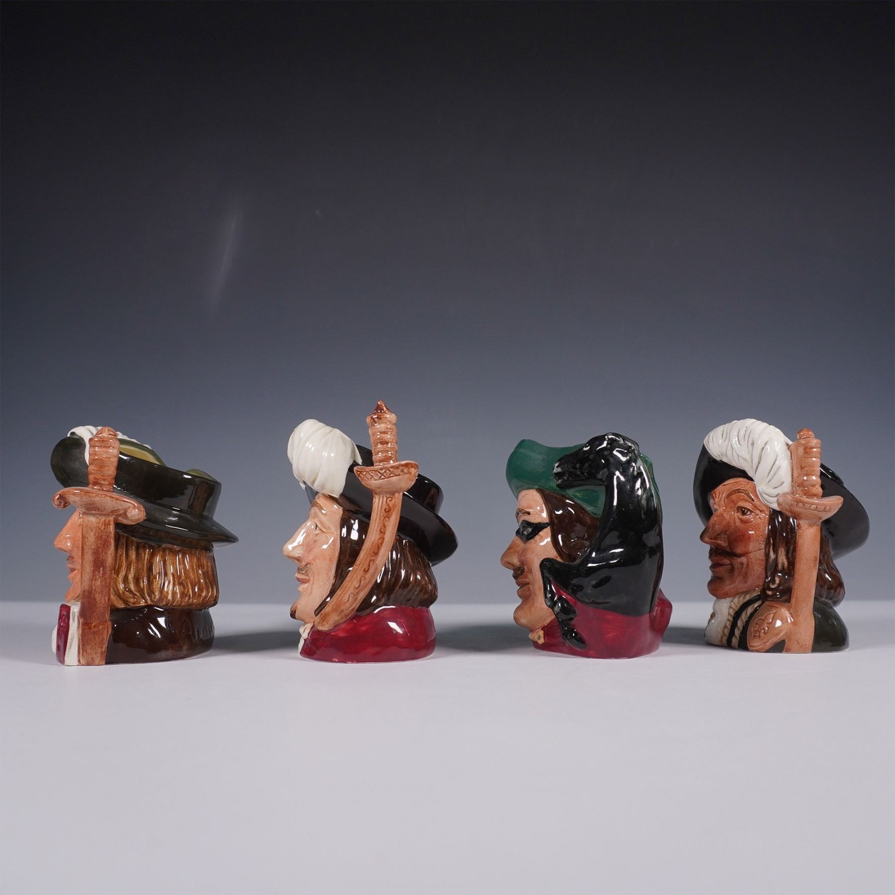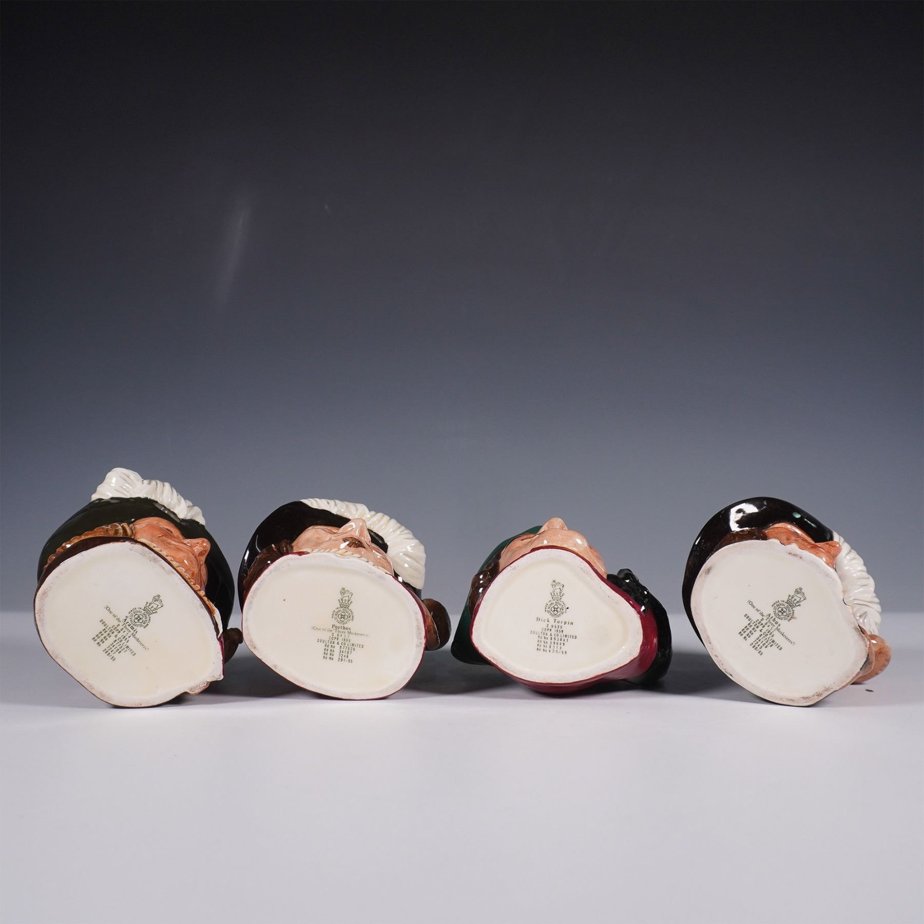 4pc Royal Doulton Character Jugs, Three Musketeers and Dick Turpin