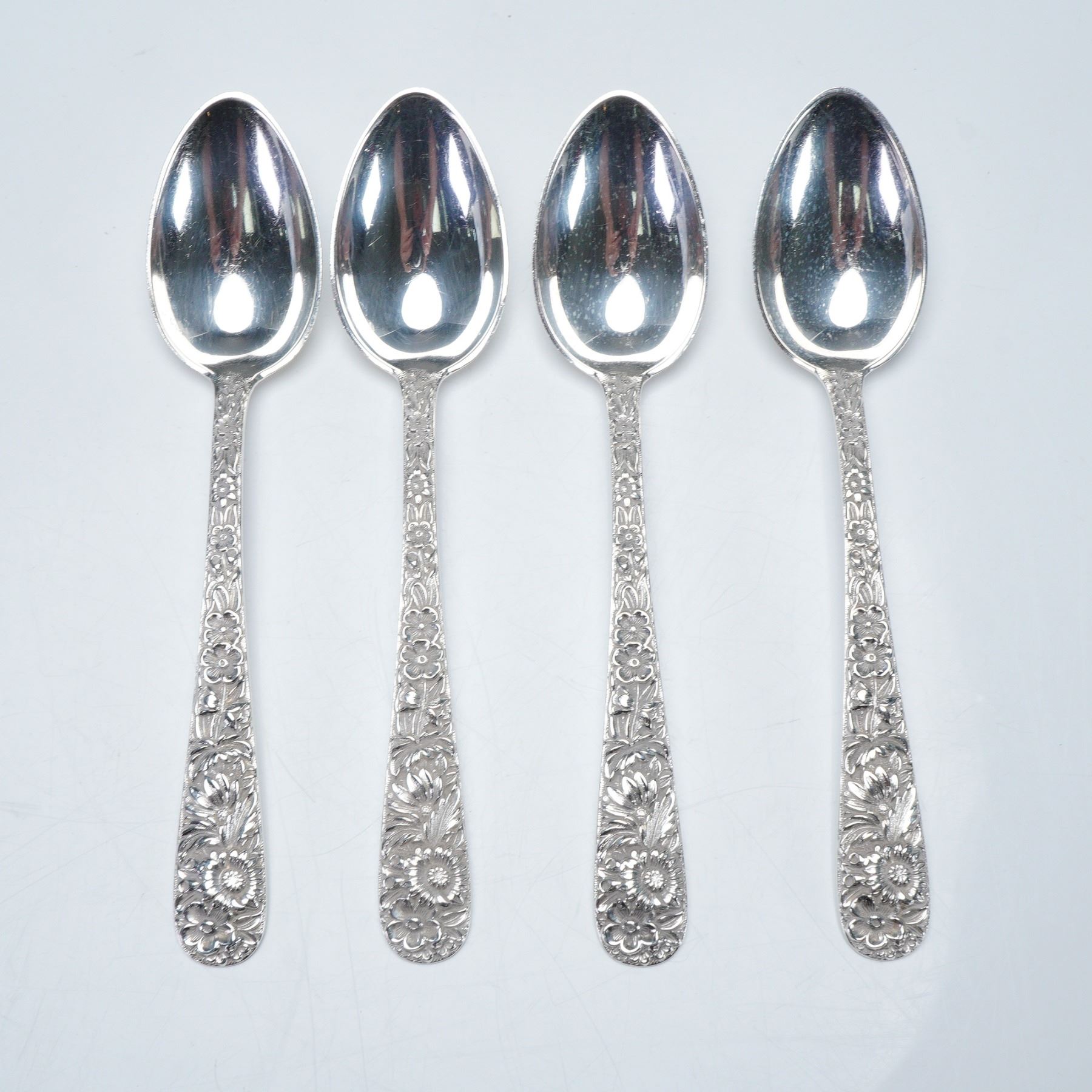4pc S. Kirk & Son Sterling Silver Teaspoons, Repousse