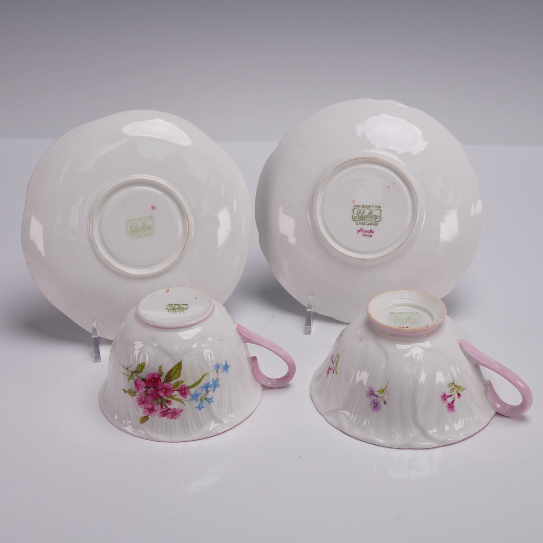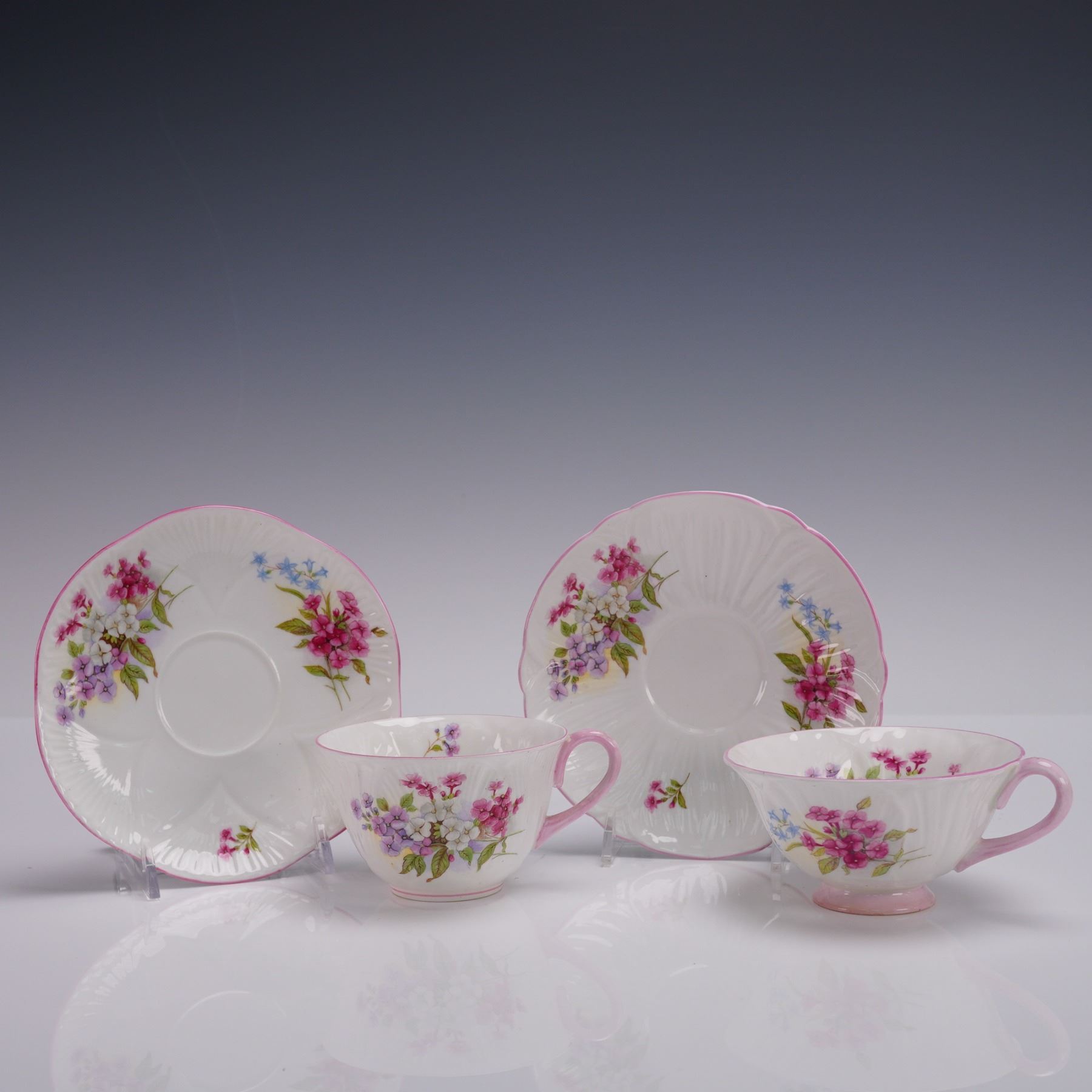 4pc Shelley Fine Bone China Tea Cups and Saucers, Stocks Pink