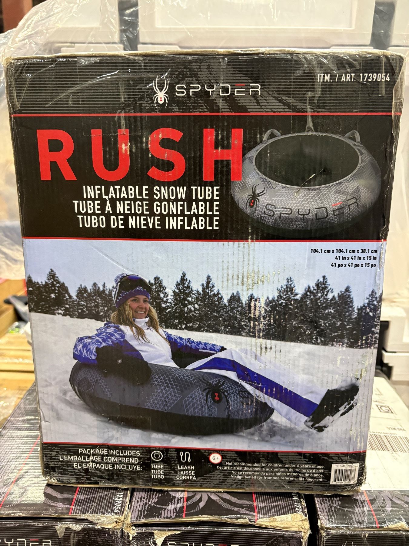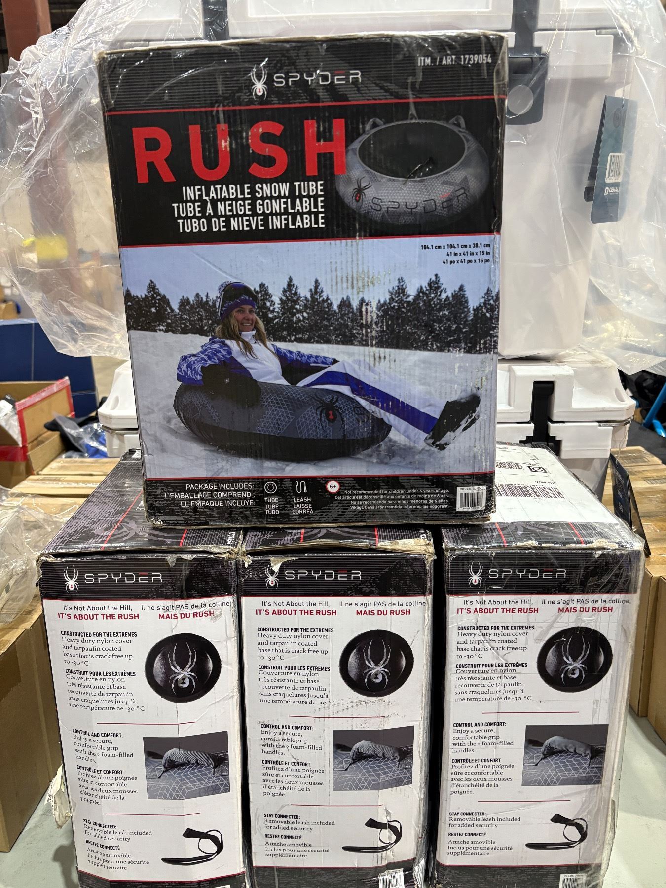 4pc Spyder Rush Inflatable Snow Tubes in boxes