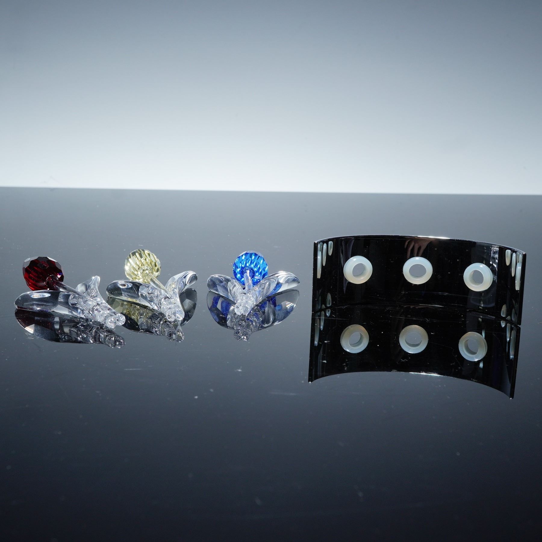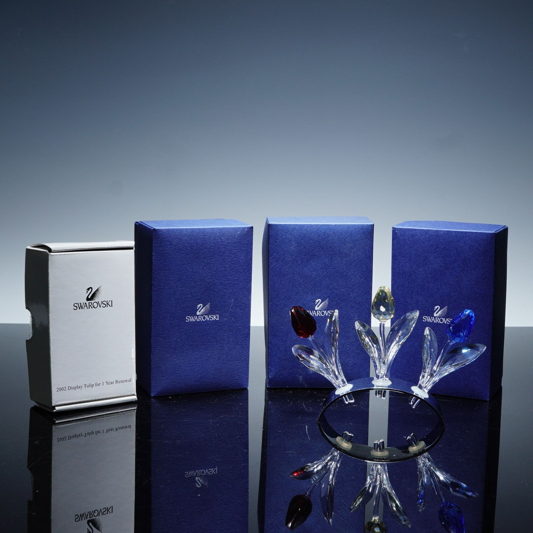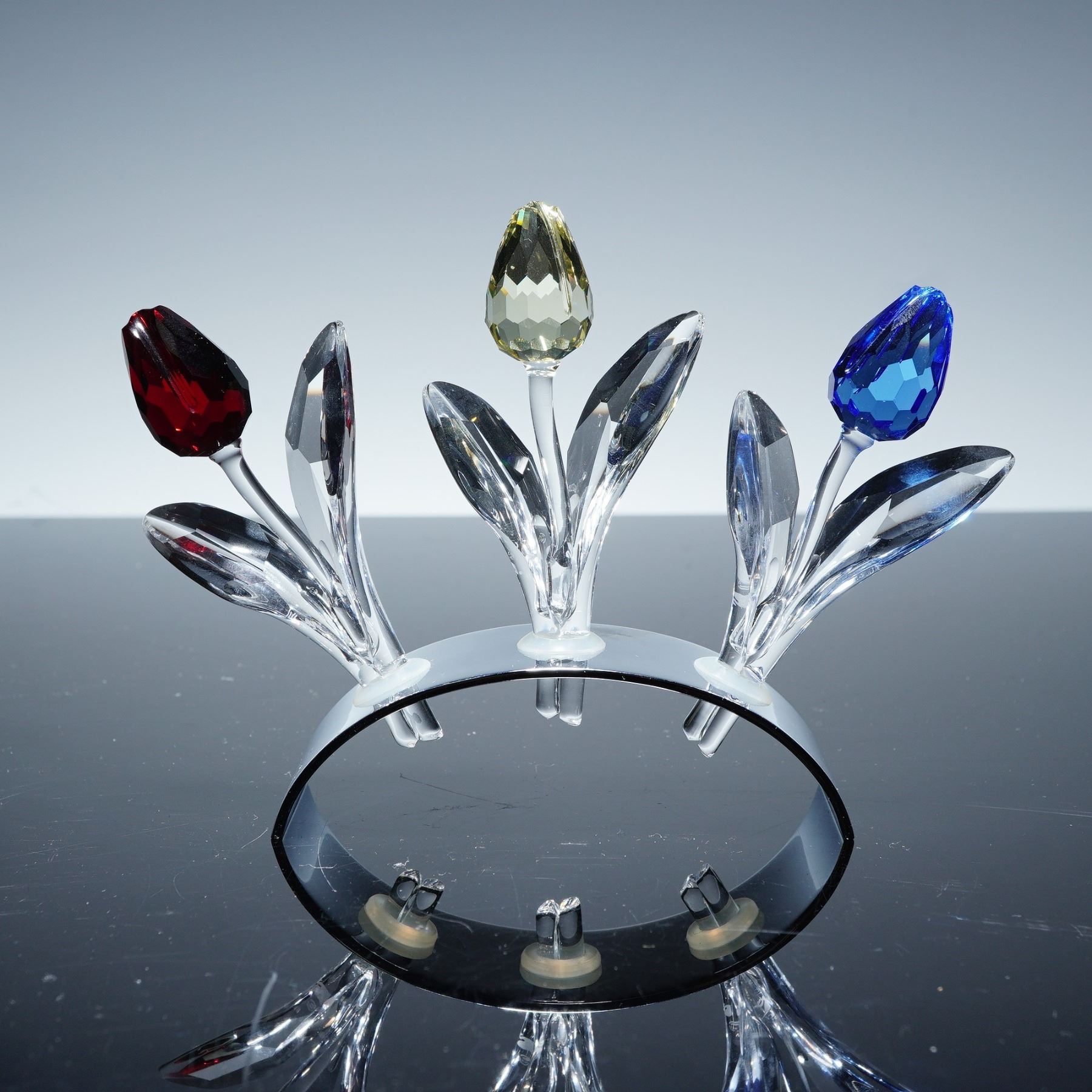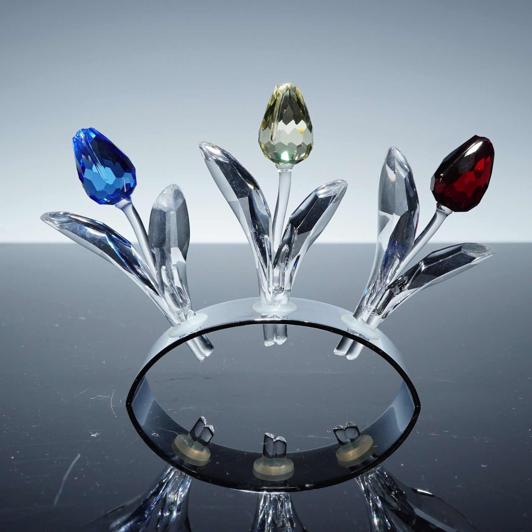 4pc Swarovski Crystal Figurines, Tulips Trio and Display