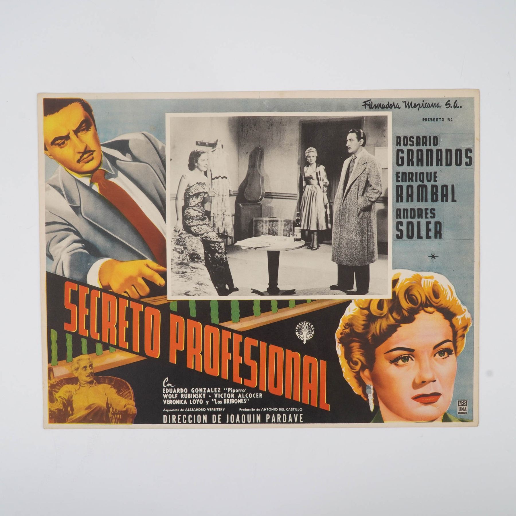 4pc Vintage Mexican Film Display Cards, Granados, Manfredi, Rambal, Fabrega