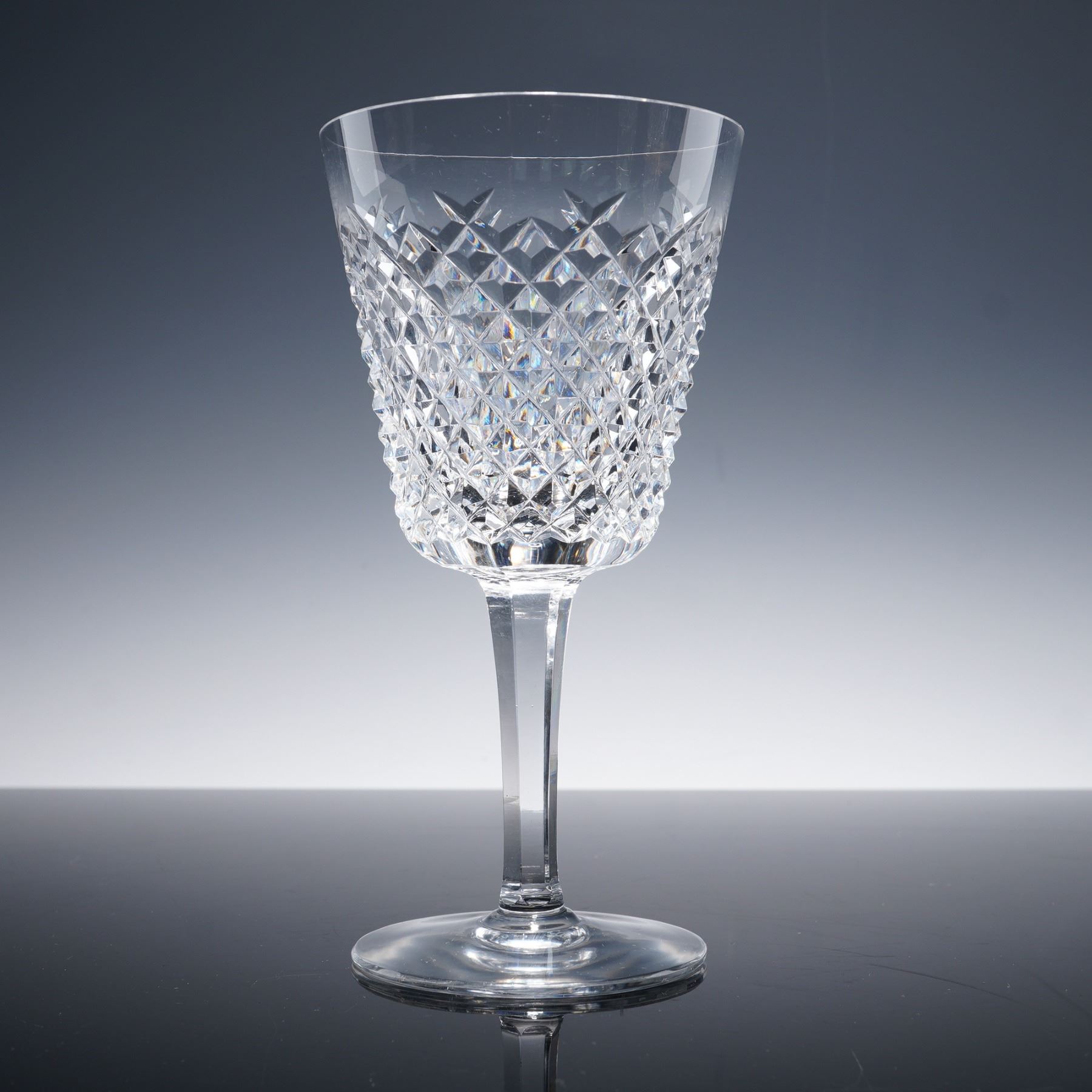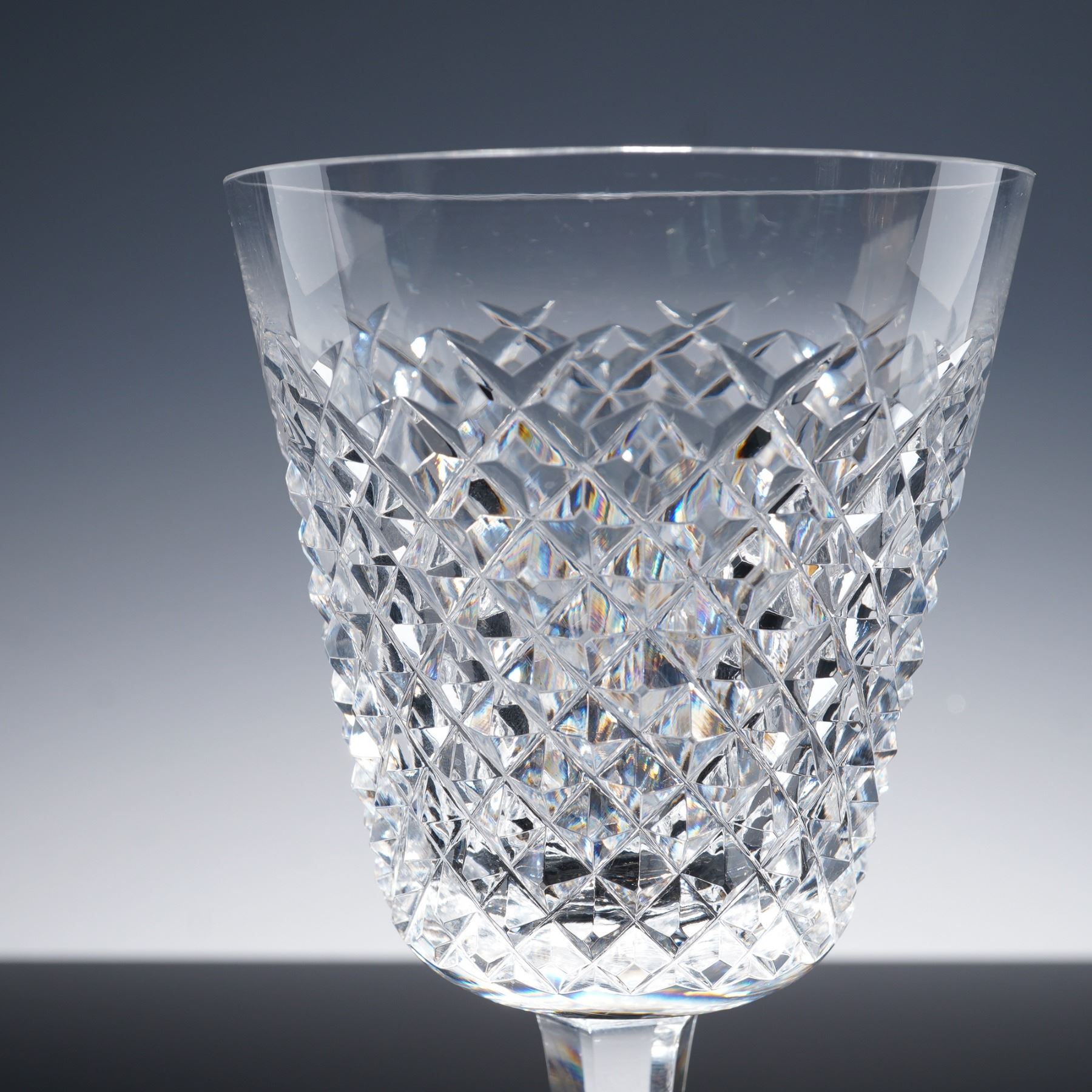 This set of four wine glasses is crafted from premium Waterford Crystal, featuring the classic diamond pattern from the Alana collection. The intricate cut crystal design catches the light beautifully, making these glasses a perfect addition to any table setting. Each glass is marked with the Waterford backstamp.
