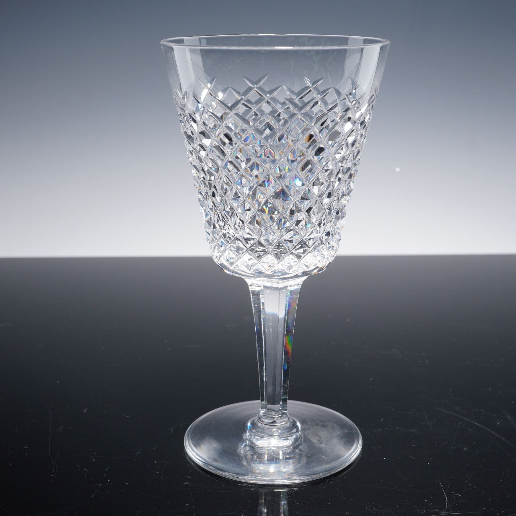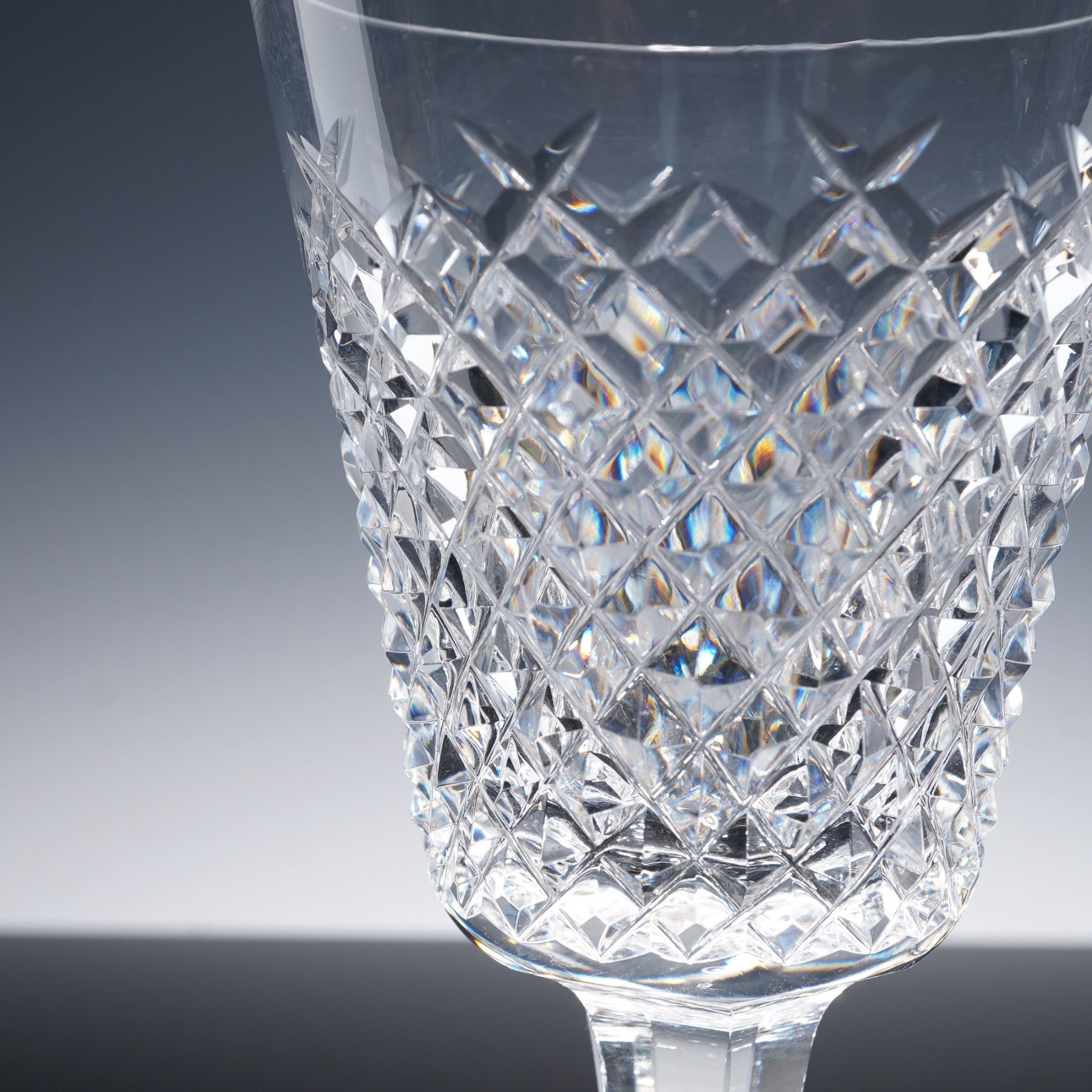 This set of four wine glasses is crafted from premium Waterford Crystal, featuring the classic diamond pattern from the Alana collection. The intricate cut crystal design catches the light beautifully, making these glasses a perfect addition to any table setting. Each glass is marked with the Waterford backstamp.