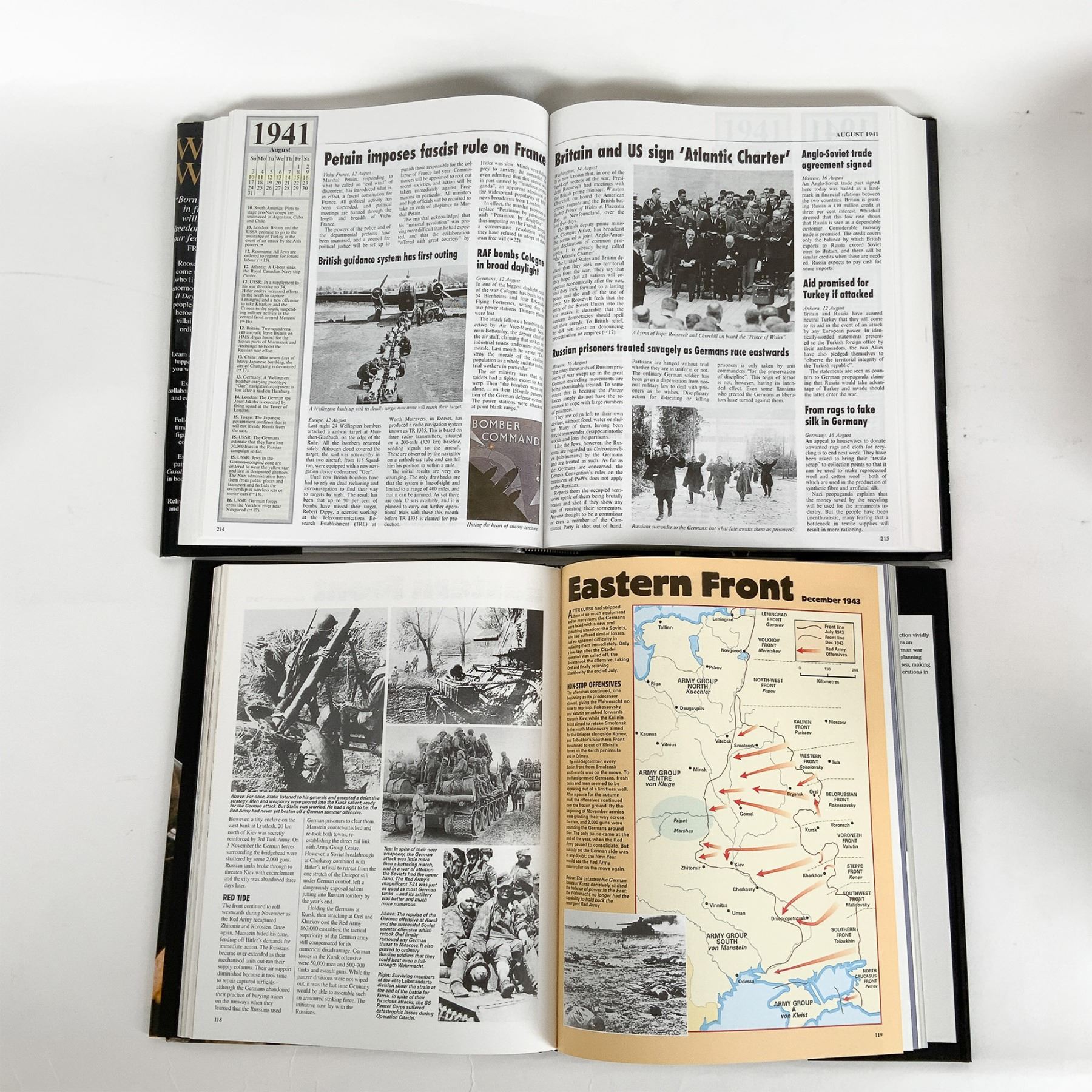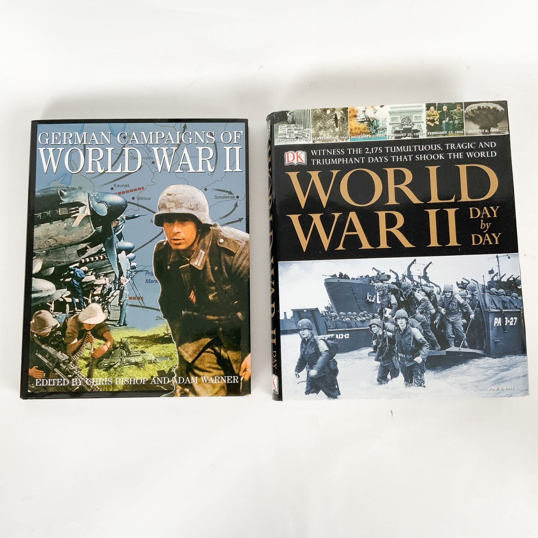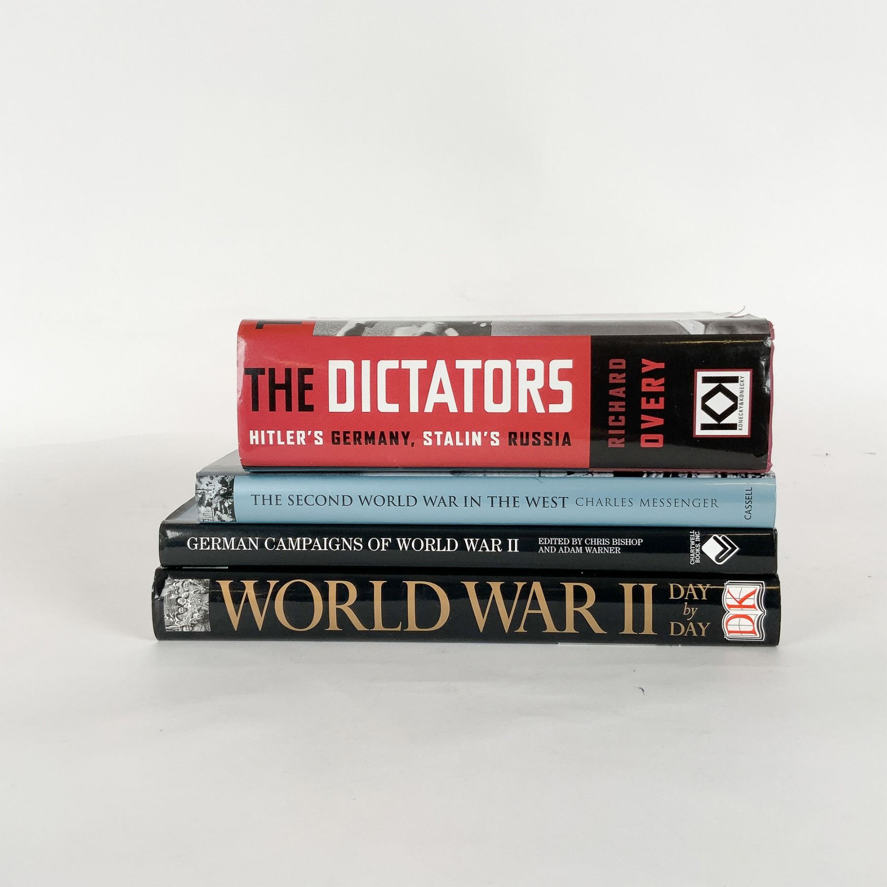 This collection of four hardcover books provides an in-depth exploration of World War II and the totalitarian regimes that shaped the 20th century. Included is The Dictators: Hitler’s Germany, Stalin’s Russia by Richard Overy, a comparative study of two of history’s most infamous leaders and their regimes. The Second World War in the West by Charles Messenger offers a detailed account of the Western Front, analyzing key battles and strategies. German Campaigns of World War II, edited by Chris Bishop and Adam Warner, examines significant military operations undertaken by Germany during the war. Lastly, World War II: Day by Day presents a chronological overview of the war, highlighting major events, battles, and strategic shifts. These books are essential reading for military history enthusiasts, scholars, and collectors. Largest book measures 11.5"H.