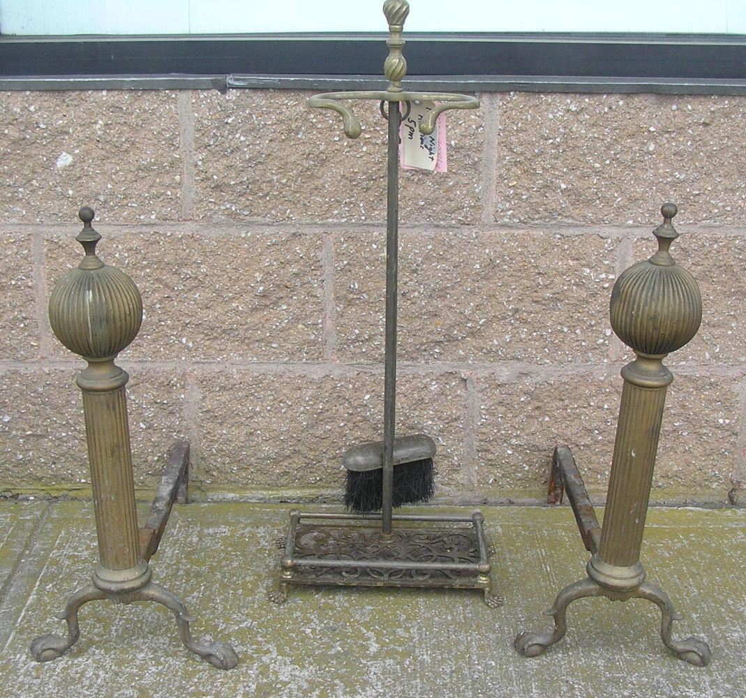 4pc. brass and iron fireplace set