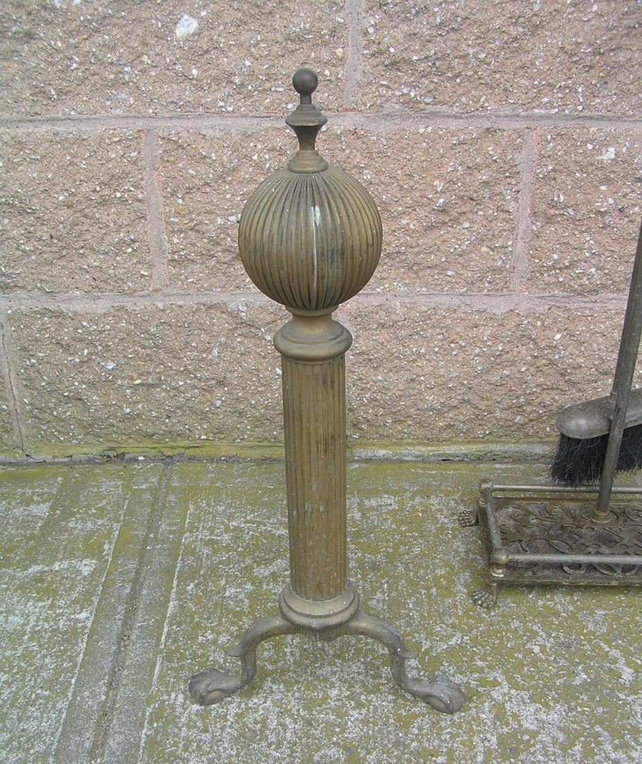 4pc. brass and iron fireplace set est. value $75.00-$80.00