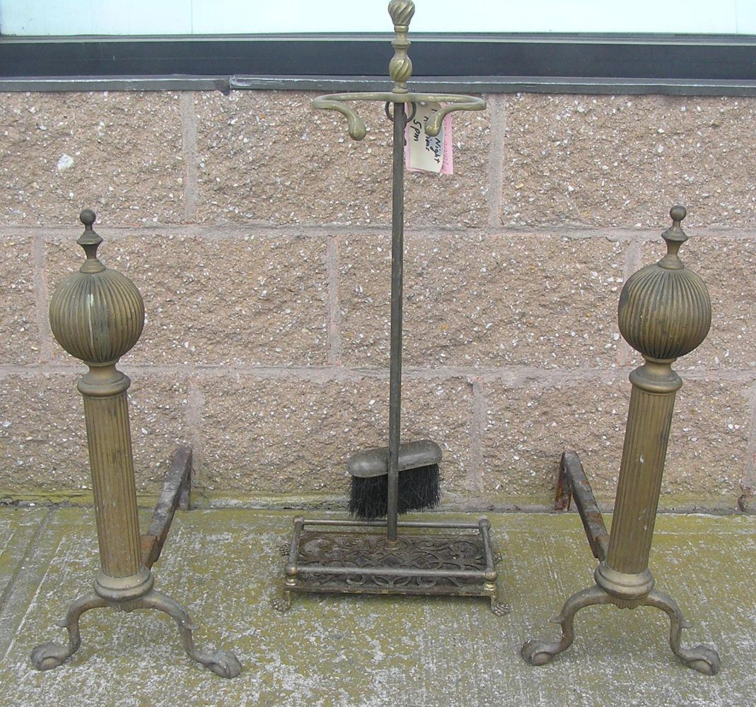 4pc. brass and iron fireplace set est. value $75.00-$80.00