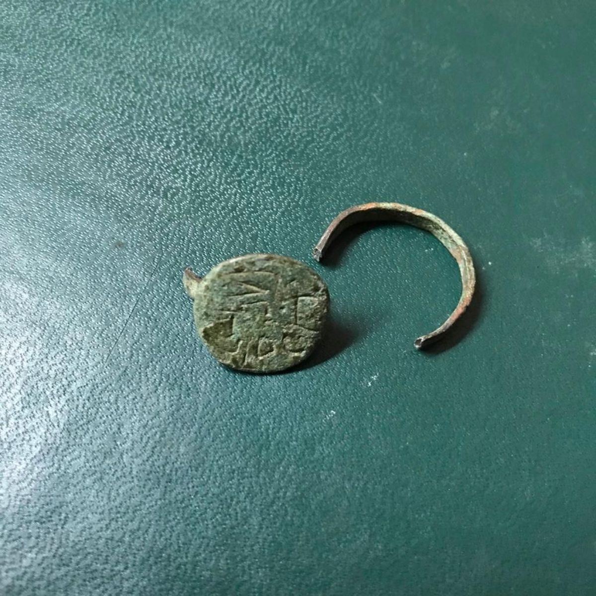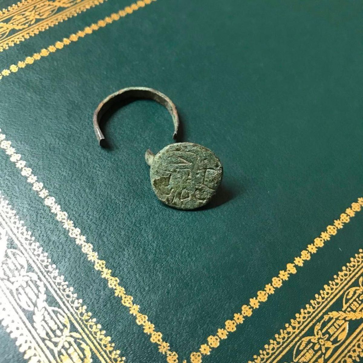 4th - 5th Century A.D. Ancient Roman artifact, ring in display case. Round bezel incised with abstract motif. * ring band broken away from bezel. artifact comes with display case.