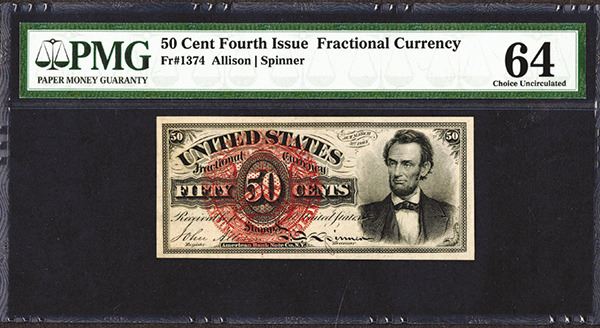 Fractional Currency. Fr. 1374. Lincoln at right. Allison-Spinner. PMG Choice Uncirculated 64.