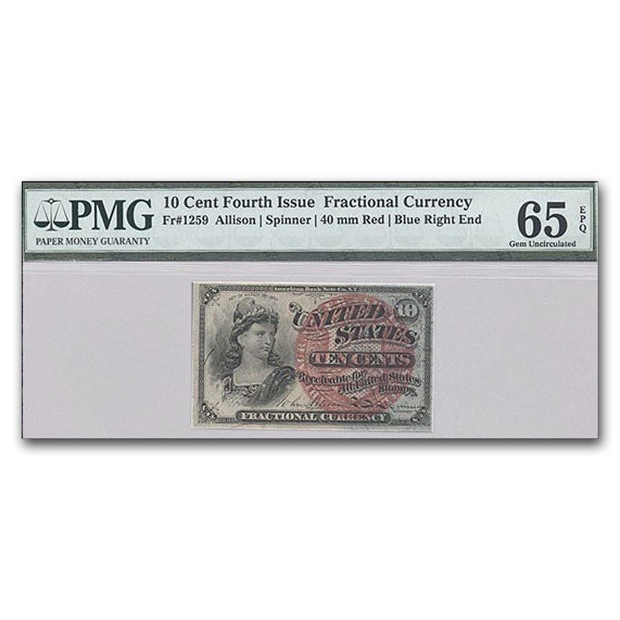 4th Issue Fractional Currency 10� Gem Unc-65 EPQ PMG (FR#1259)