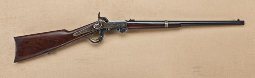 4th model Burnside, .52 caliber breech loading Civil War era carbine in fine to near excellent original condition, serial #17238. The barrel shows 95-98% original blue that is toning and aging slightly, the action shows 90-95% case hardening just starting to tone and age but still very good rainbow colors. The block and tang show 95-98% bright original blue. The lever, bottom tang, and hinge show 85-95% brilliant original blue. The stocks are fine to near excellent with two sharp cartouches, some storage type dings, mars, dents, particularly at the rear of the action. The buttplate shows 90% plus original case hardening. The markings are sharp, the small parts and sights are all retained. The action is tight, the bore excellent. A strong 9.6 or 9.7 on 1-10 scale. Est: $3,500 - $4,500