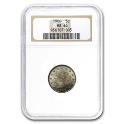 One 1906 Liberty Head 5 V Nickel Coin NGC MS64.