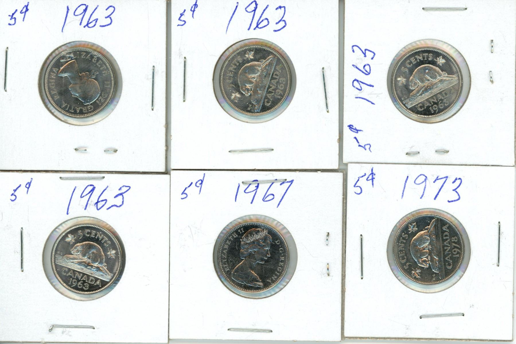 4x 1963, 1967 and 1973 Canadian 5 Cent Coins