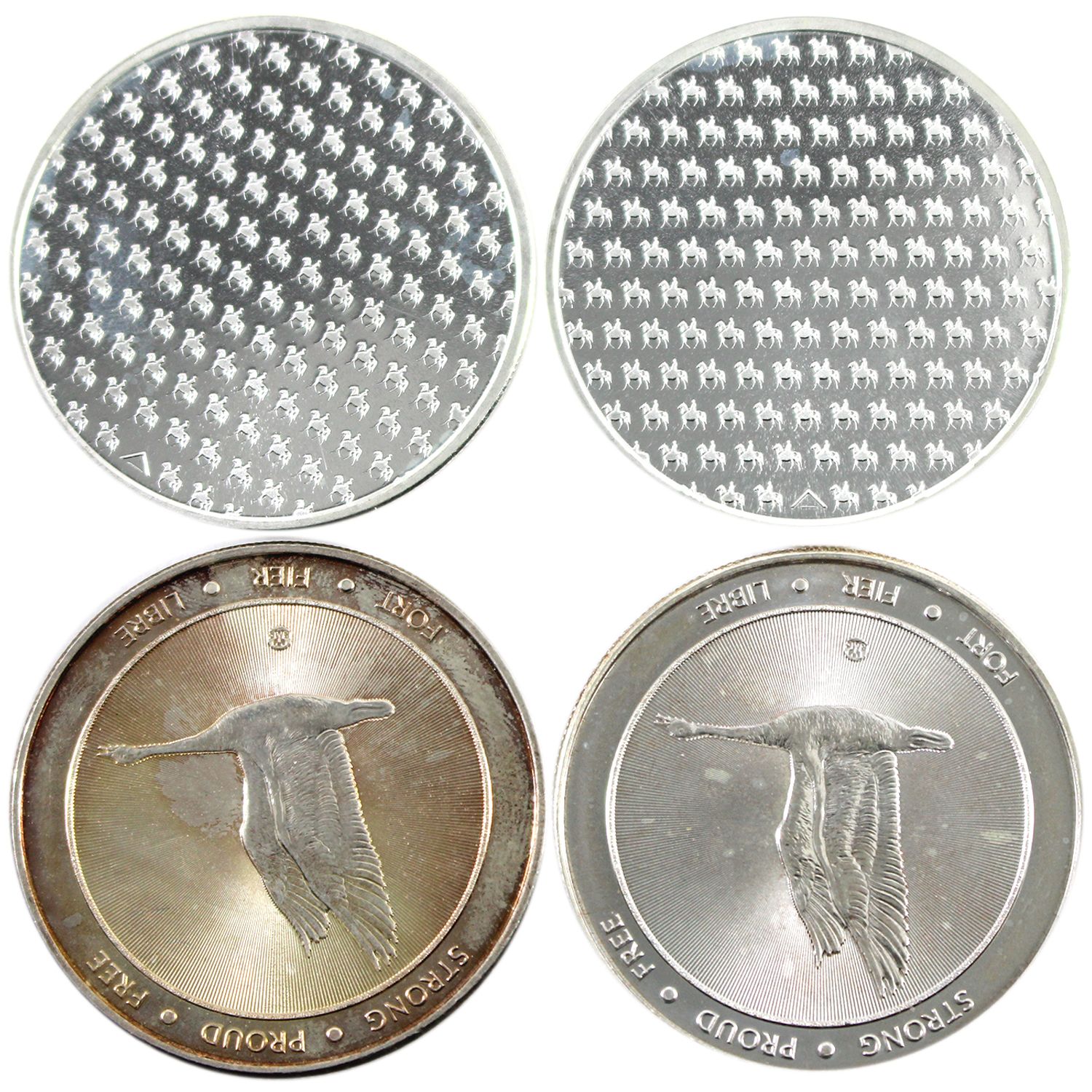 INCLUDES: 2x 1867 2017 1oz Silver Round CANADA 150th Anniversary Goose Strong·Proud·Free 9999 Fine Silver & 2x Royal Canadian Mounted Police Silver Rounds. 4pcs.