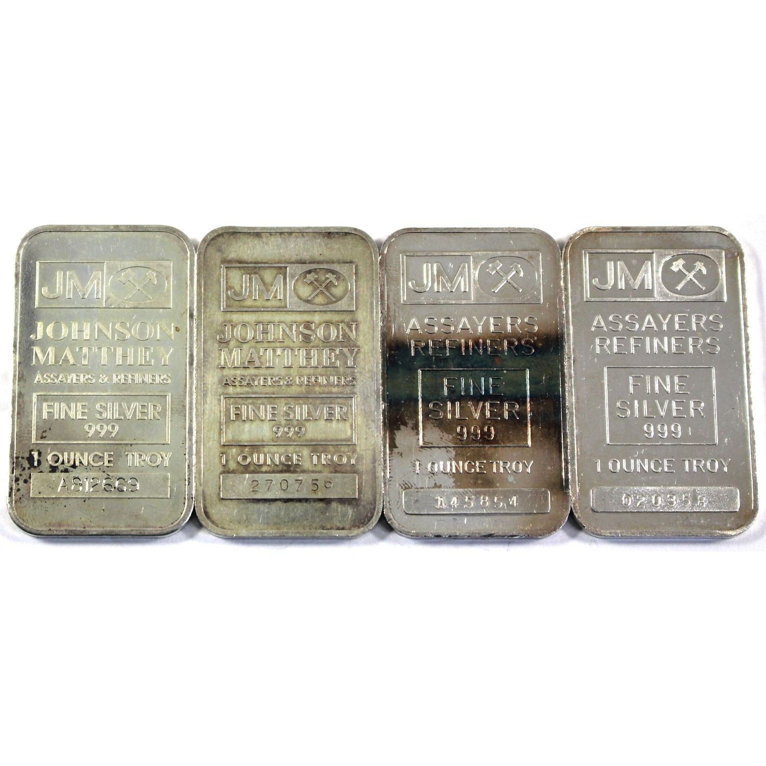 4x 1oz Johnson Matthey .999 Fine Silver Bars - 2x Regular Back & 2x Blank Back. 4pcs (TAX Exempt)