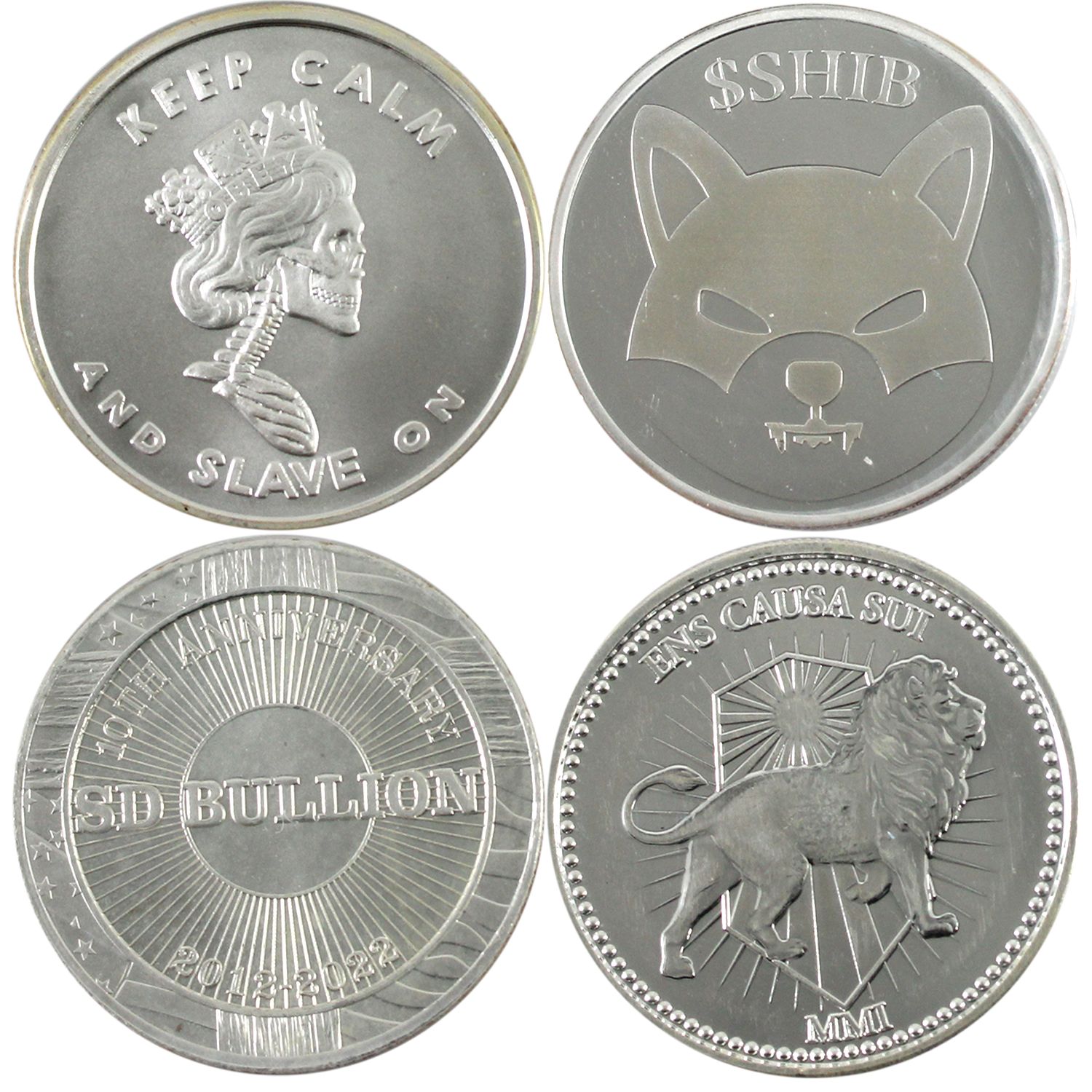 INCLUDES: ENS CAUSA SUI MMI EX UNITAE VIRES LION, One Nation Under God Cross SD Bullion 10th Anniversary, Keep Calm and Slave On & Shiba inu Coin $SHIB Physical Crypto Coin Shiba 1oz SILVER Commemorative Coin. 4pcs.