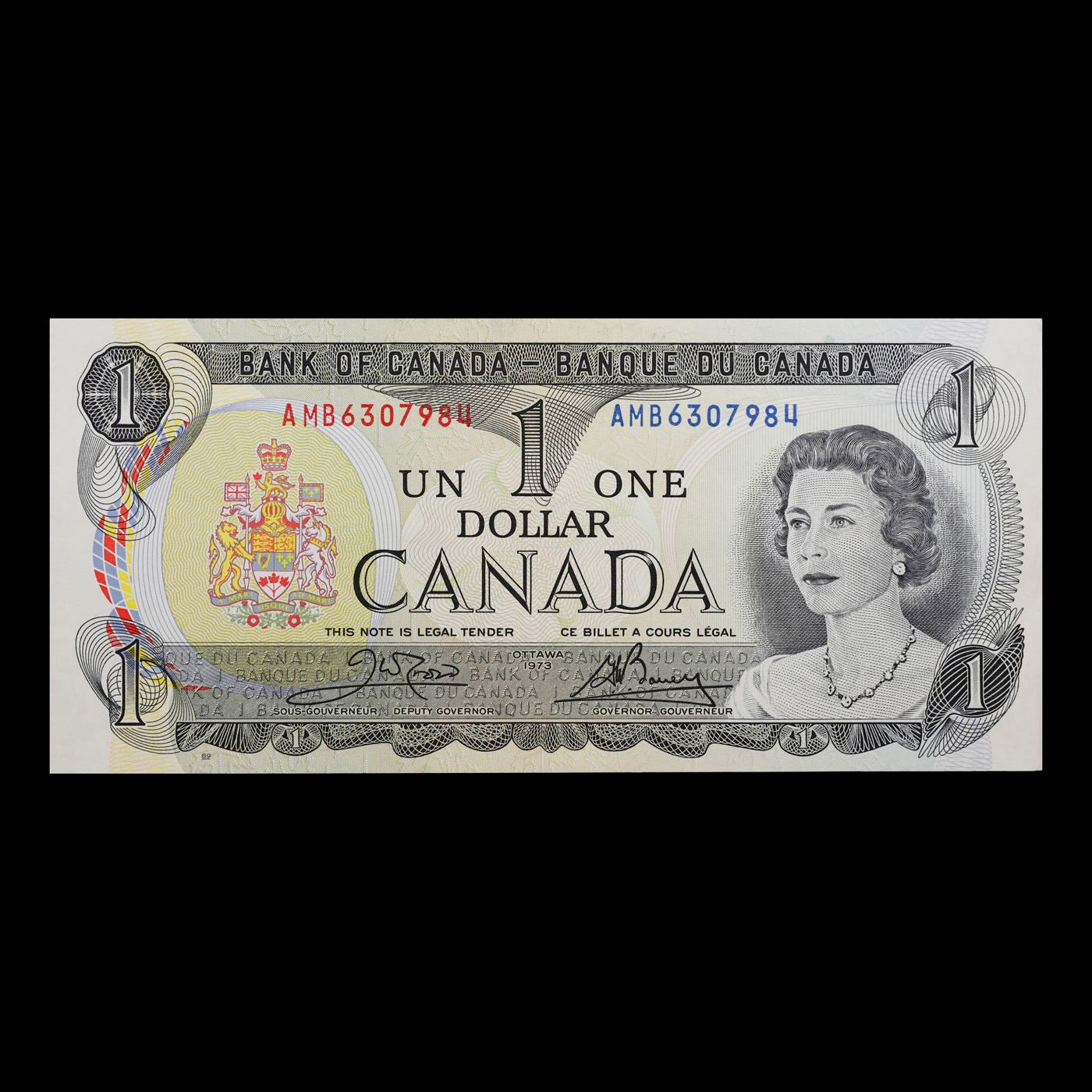 4x Consecutive 1969-1975 Canada 1 Dollar Banknotes, All CU! P# 85c, Sig. Crow & Bouey Grades CU.