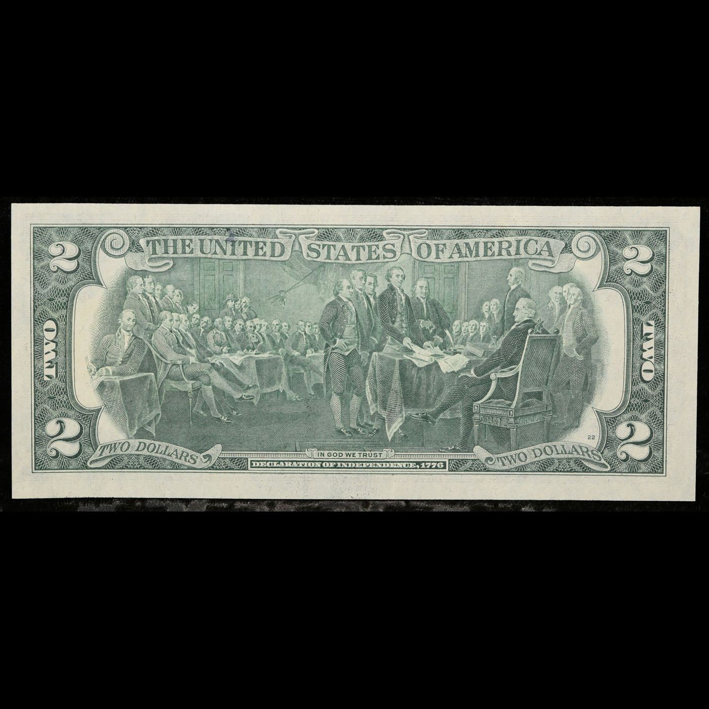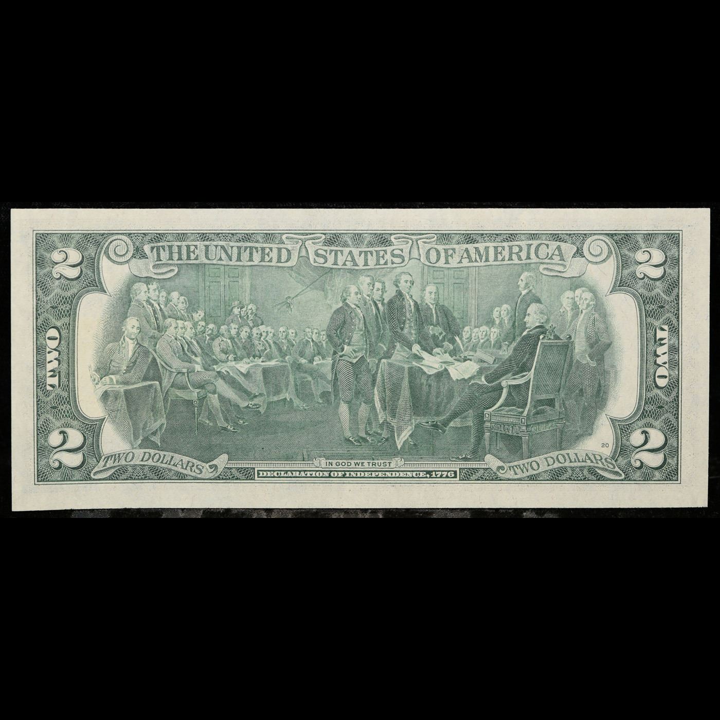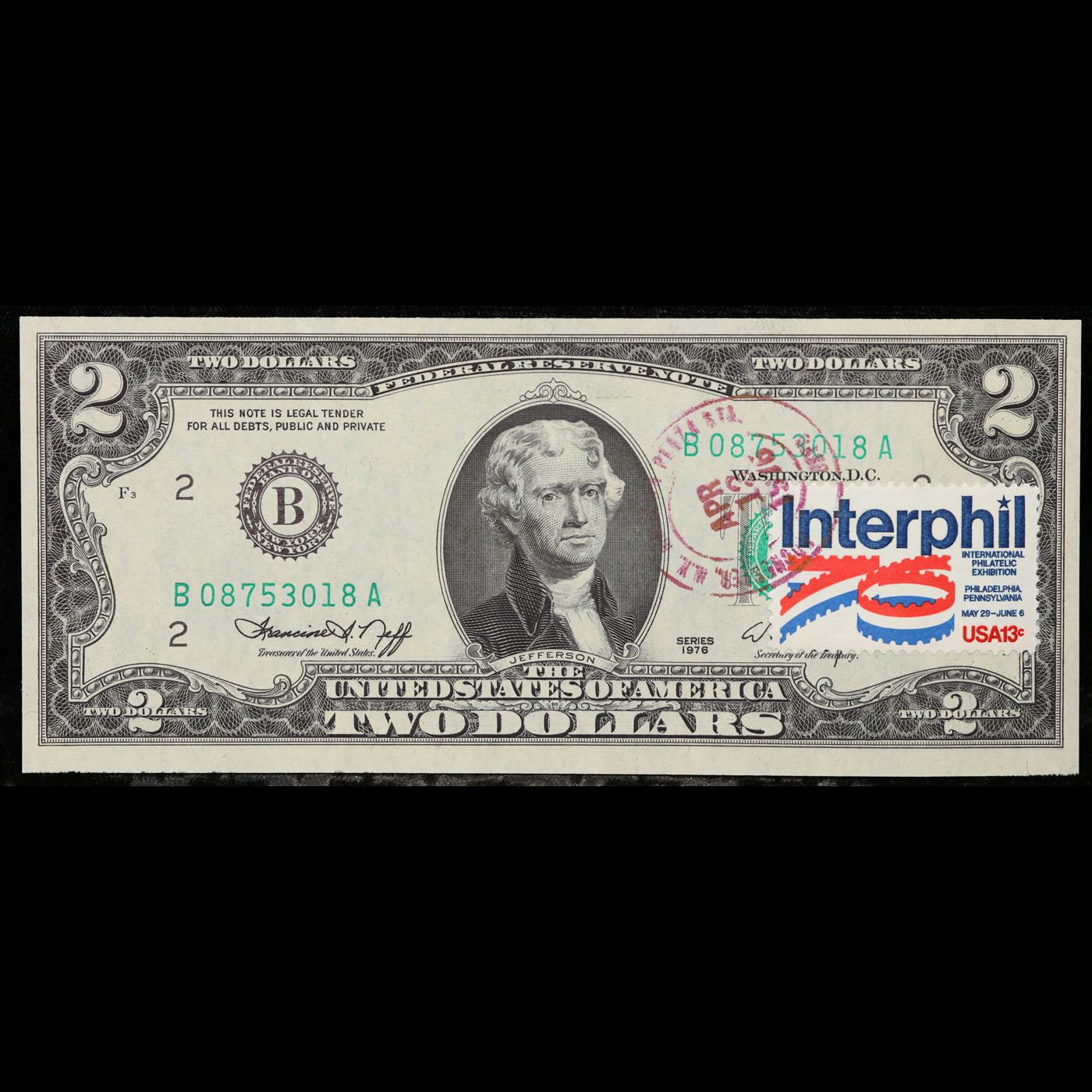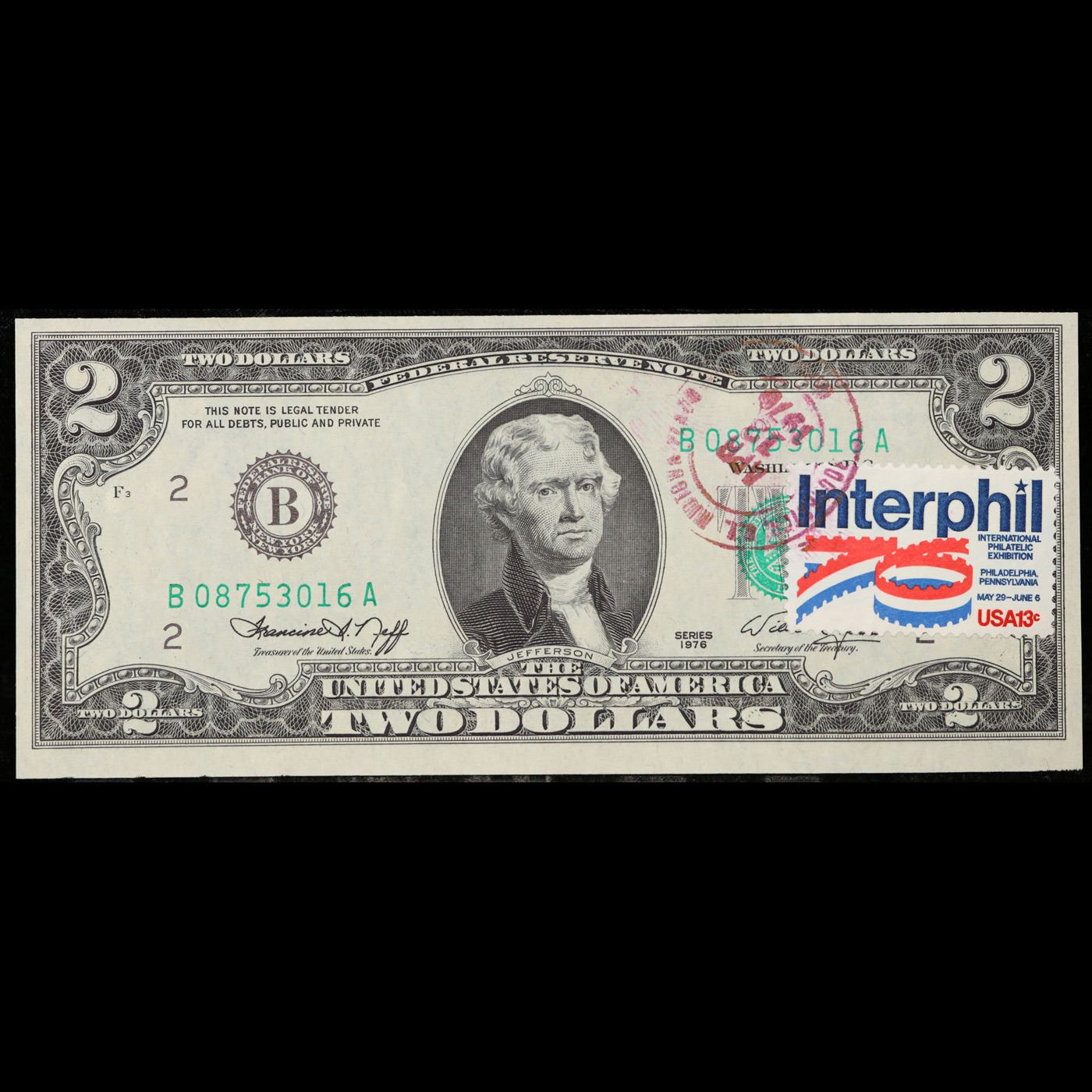 4x Consecutive 1976 $2 Federal Reserve Notes - 1st Day of Issue, w/ Stamp, All CU! Grades Brilliant Uncirculated. On April 13, 1976, to celebrate the bicentennial of American independence, new $2 Federal Reserve Notes were issued with backs featuring the well-known painting Signing of the Declaration of Independence. These Notes all have a 13c Stamp or 2 stamps totaling 13c hand canceled on April 13, 1976 for the first day of issue of the new $2 notes. These official first-day-of-issue Bicentennial notes will be historic additions to your collection (designs and locations of the 13¢ stamps will vary).