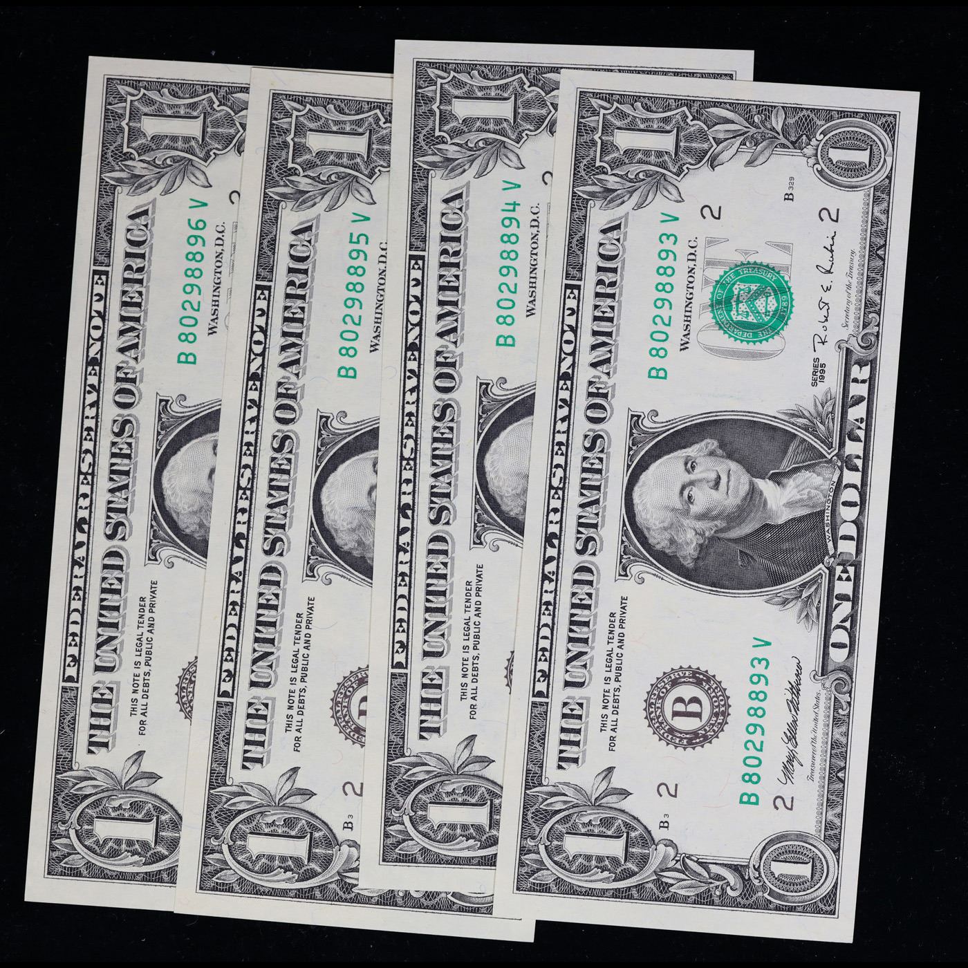 4x Consecutive 1995 $1 Federal Reserve Notes (New York, NY), All CU Grades CU.