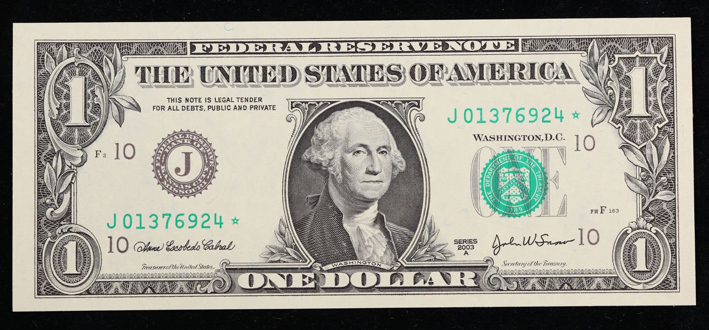 4x Consecutive 2003A **Star Note** $1 Federal Reserve Notes, All CU! (Kansas City, MO) Grades Brilliant Uncirculated.