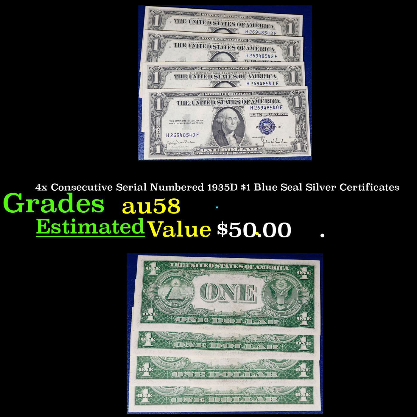 4x Consecutive Serial Numbered 1935D $1 Blue Seal Silver Certificates Grades Choice AU/BU Slider.