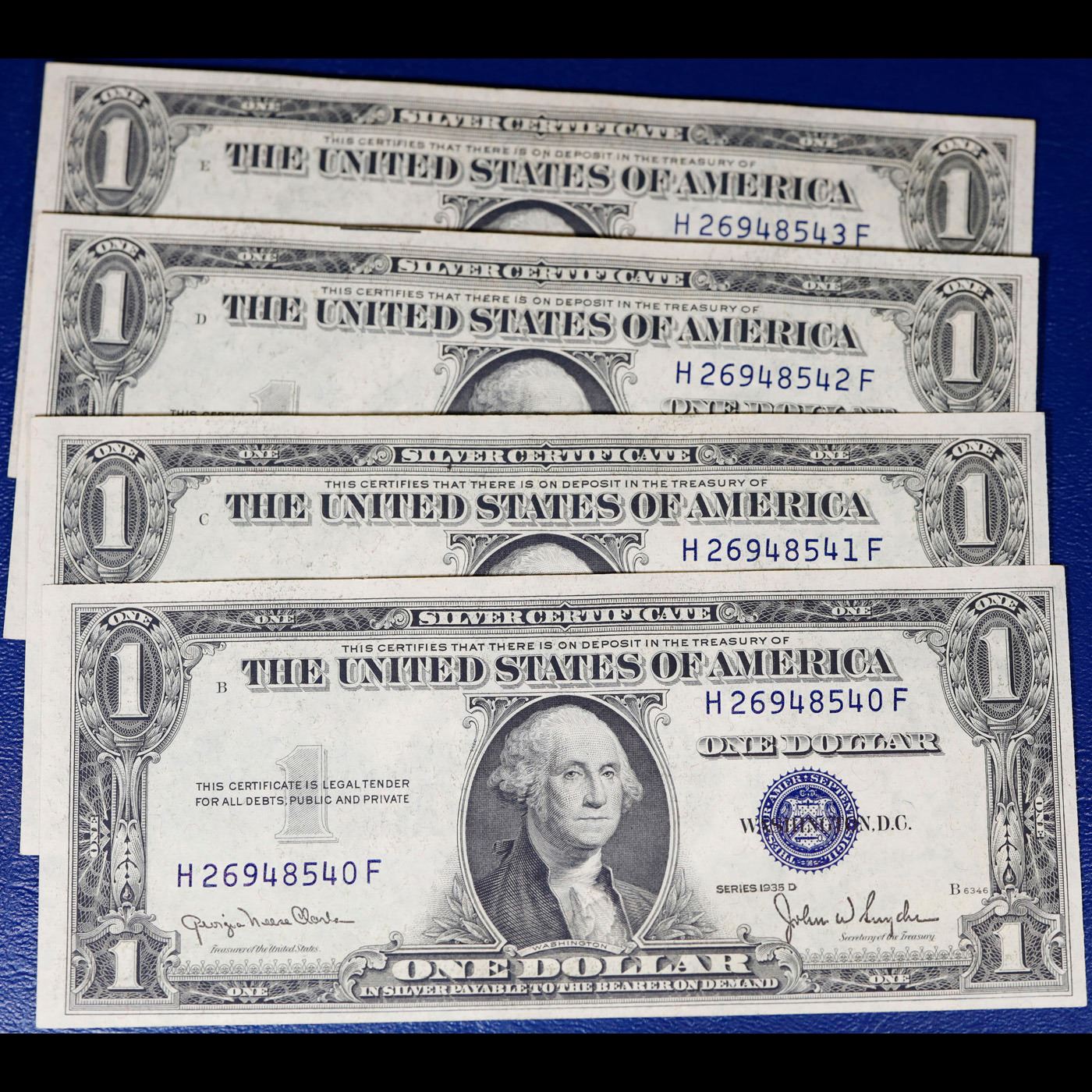 4x Consecutive Serial Numbered 1935D $1 Blue Seal Silver Certificates Grades Choice AU/BU Slider