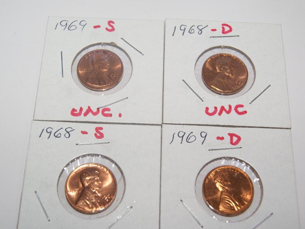 (4) UNC Proof Lincoln Cents, (1) 1968-D, (1) 1968--S, (1) 1969-D, (1) 1969-S
