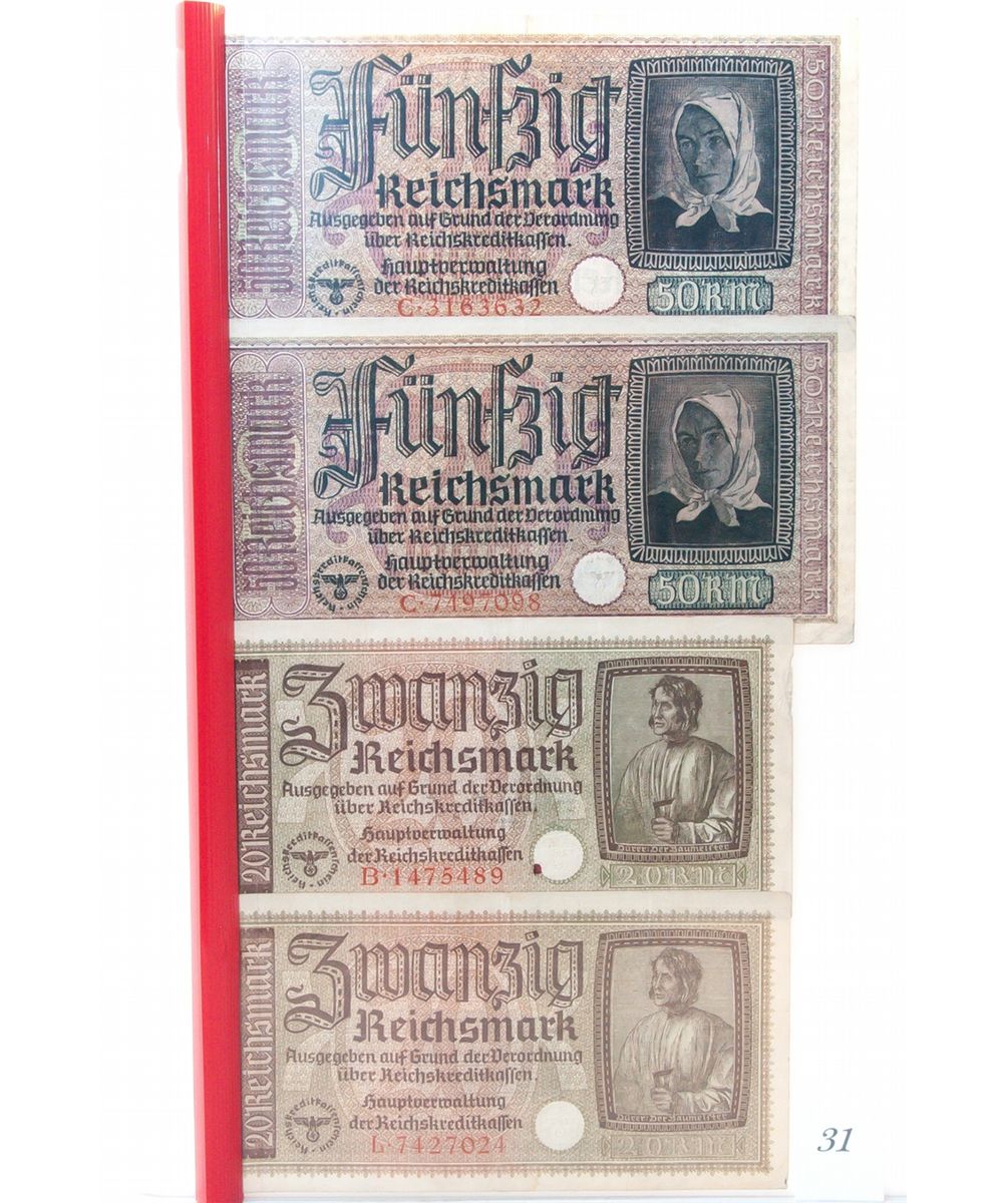 4x Nazi German WW2 reichmark bills