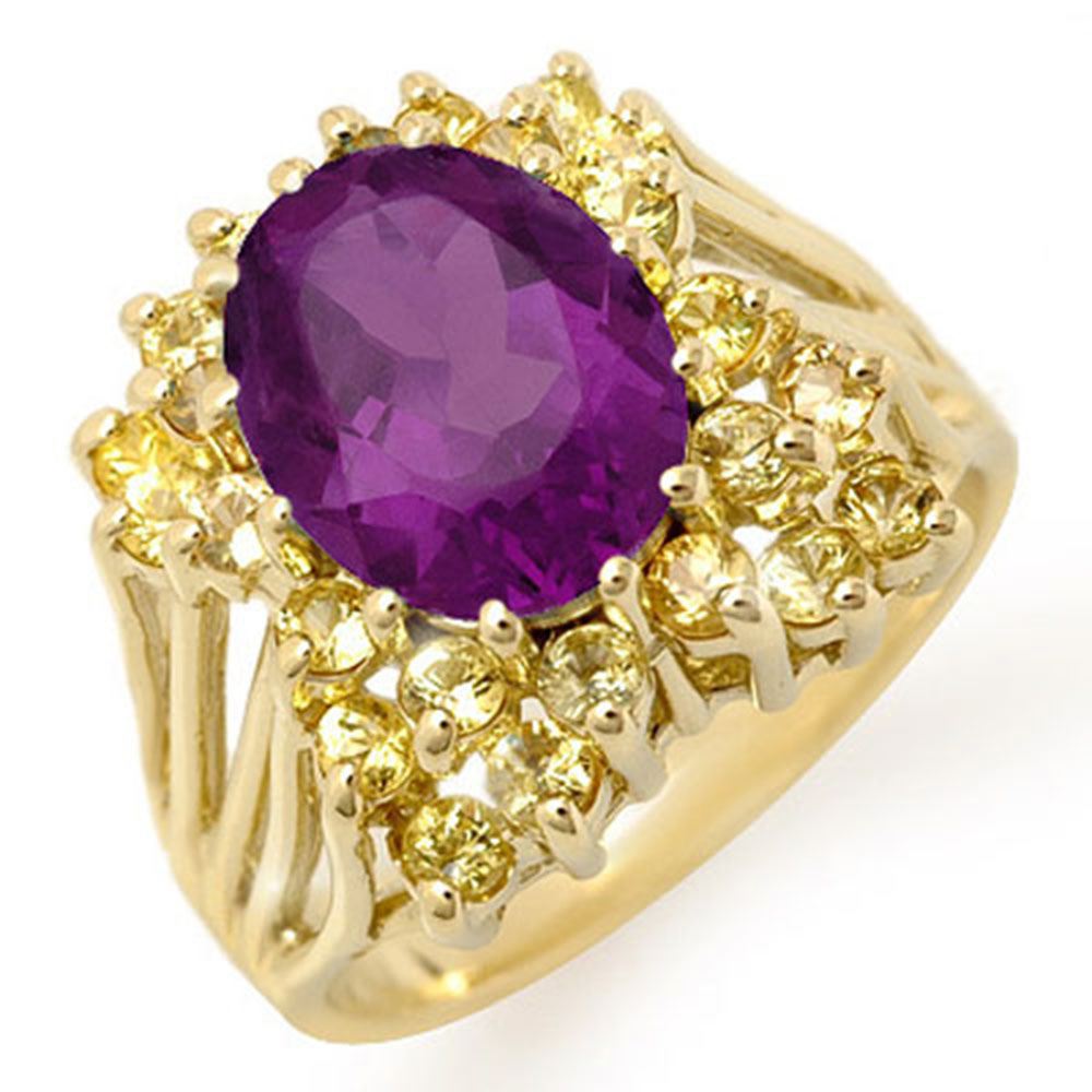 REF-40R9K - SKU: 11774 ---- 5.0 ctw Yellow Sapphire & Amethyst Ring 10k Yellow Gold