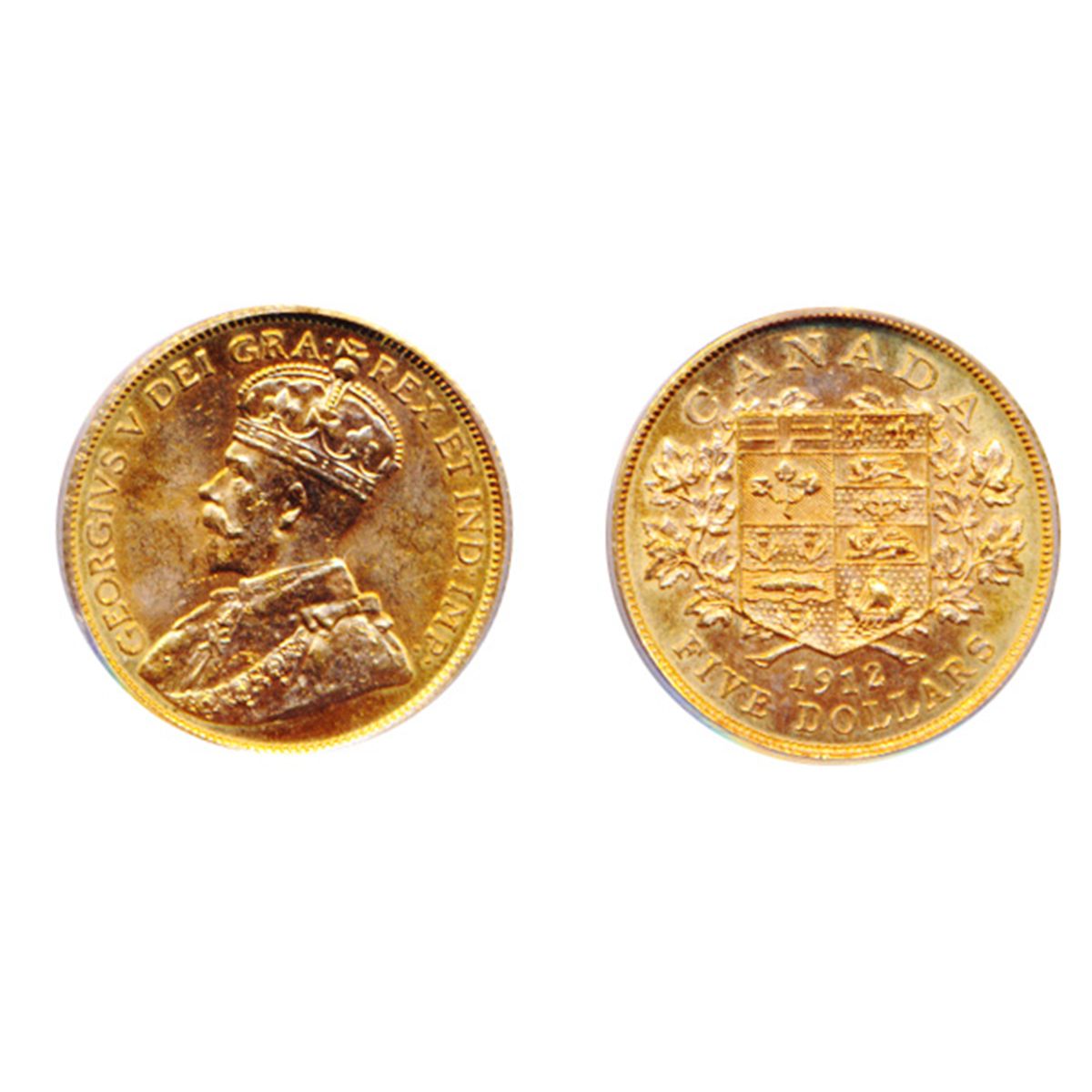 $5.00 Gold. 1912. PCGS graded Mint State-64. Brilliant golden luster.
