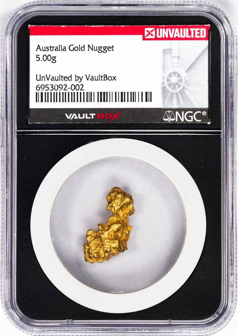 One 5.00 Gram Australia Gold Nugget NGC Vaultbox Unvaulted. NGC Certified.