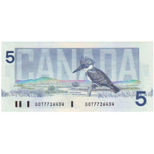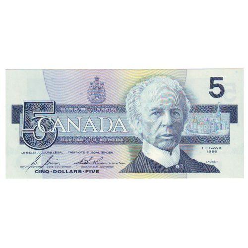 Bank of Canada, $5.00 Insert note 1986, graded CCCS UNC-66, Charlton # BC-56cA, signature Bonin Thiessen, serial GOT7726434, insert range 7.720M - 7.740M. Highly undervalued and positively Very Rare note, first note to be recognized as an insert and very few survived. Problem free note.