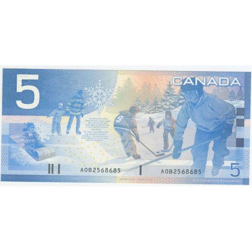 Bank of Canada, $5.00 Insert note 2001, grade Choice UNC, Charlton # BC-62aA, signature Knight Dodge, serial AOB2568685, insert range 2.440M - 2.600M. Problem free note.
