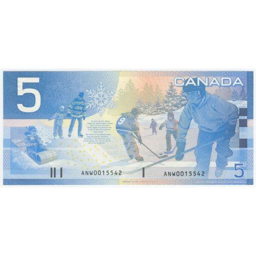 Bank of Canada, $5.00 Insert note 2001, grade Gem UNC, Charlton # BC-62aA, signature Knight Dodge, serial ANW0015542, insert range 0.000M - 0.180M. Problem free note.