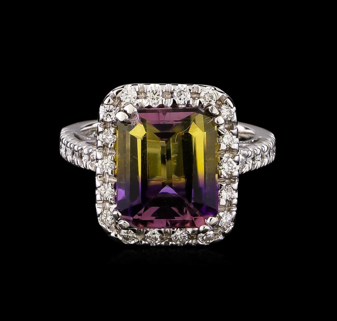 One ring featuring: 14KT White Gold weighing 7.7 grams containing one Ametrine center stone with a total weight of 5ct and diamonds with a total weight of 0.58ct.