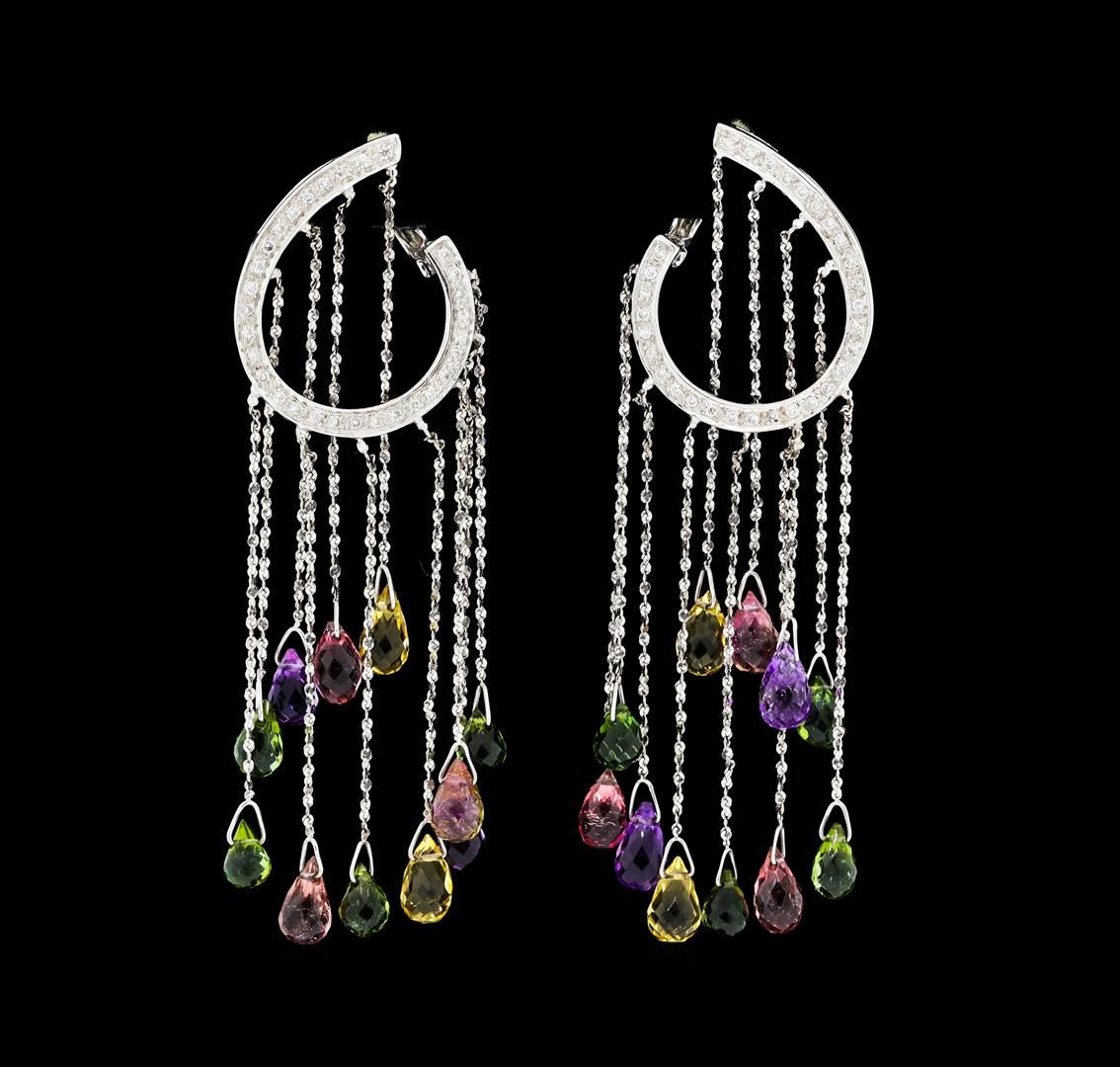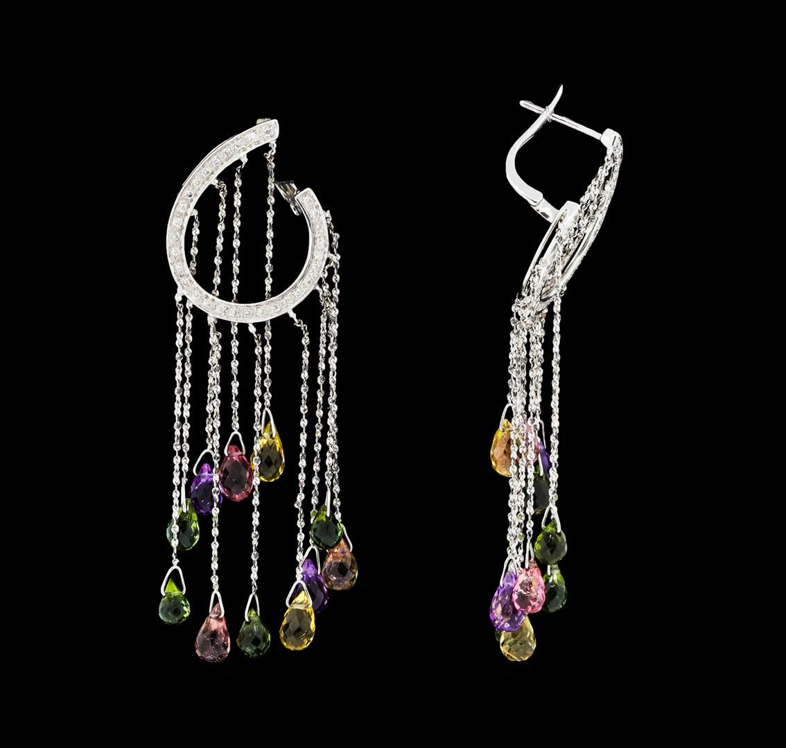 One pair of lady's earrings with hinged, clip backs featuring: 18KT white gold weighing 10.2 grams containing multi-color gemstone briolletes weighing 5.00ctw and diamonds weighing 0.30ctw.