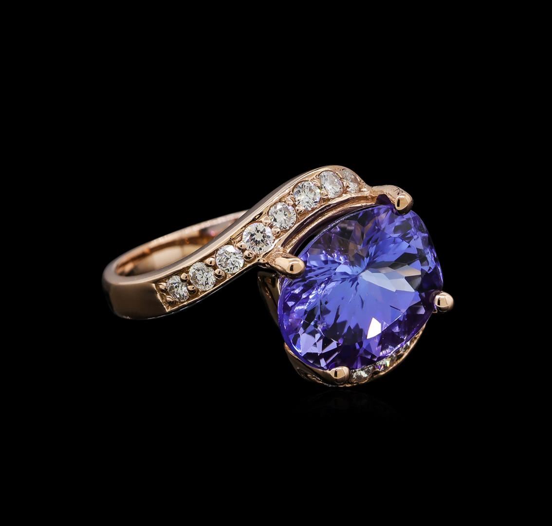 One ring featuring: 14KT rose gold weighing 4.62 grams containing Tanzanite with a total weight of 5.00ct and diamonds with a total weight of 0.38ctw.