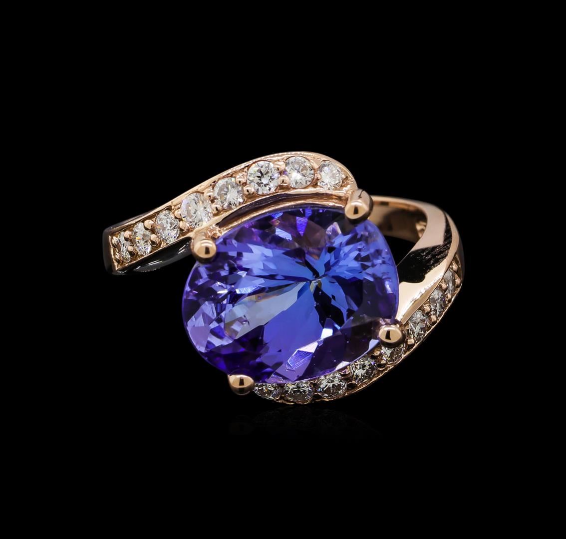 One ring featuring: 14KT rose gold weighing 4.62 grams containing Tanzanite with a total weight of 5.00ct and diamonds with a total weight of 0.38ctw.