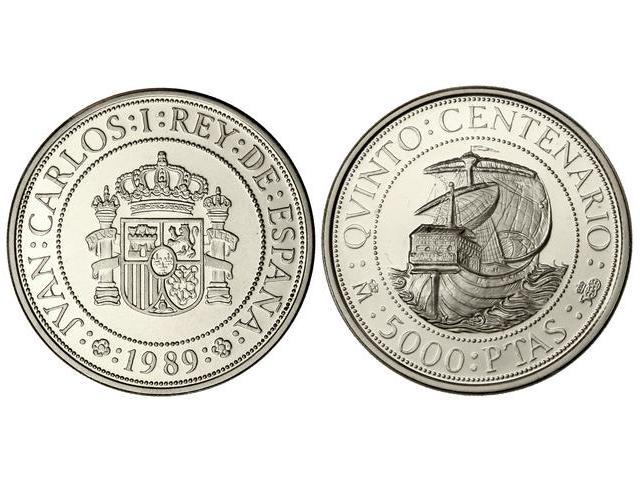 5.000 Pesetas. 1989. AR. I Serie. Santa María. En estuche original, con certificado. PROOF.