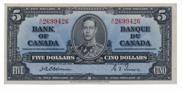 1937 Issue. BC-23a. Osborne-Towers. No. A/C2699426. BCS graded Extra Fine-40.