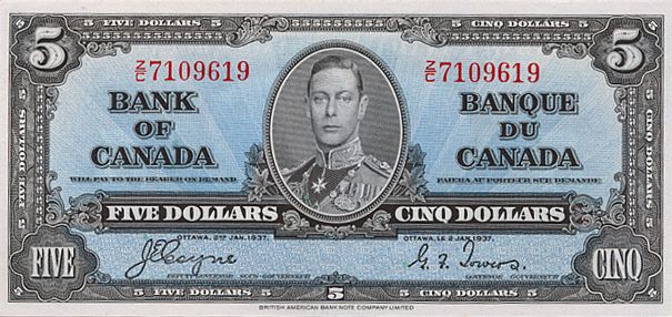 1937 Issue. BC-23c. Coyne-Towers. No. Z/C7109619. BCS graded AU-58.