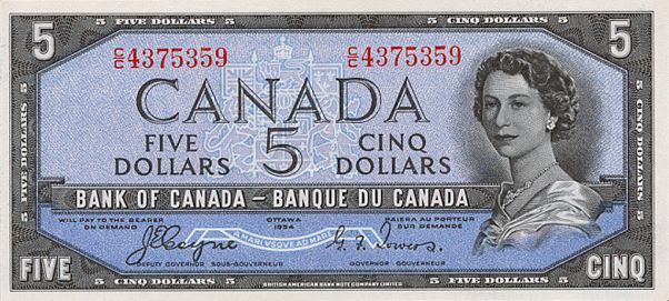 1954 Issue. BC-31a. Coyne-Towers. ‘Devil’s Face’. No. C/C4375359. A ‘changeover’ note. BCS graded AU-58.