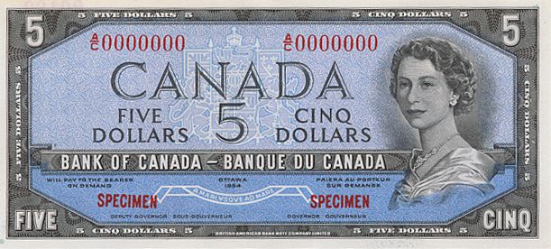 1954 Issue. BC-31S, A SPECIMEN. No. A/C0000000. ‘Devil’s Face’ issue. Overprinted ‘SPECIMEN’ in red twice at signature areas. Set. No. B0162 on back. AU.