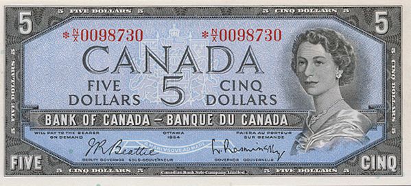 1954 Issue. BC-39bA. Beattie-Rasminsky. No. *N/X0098730. PCGS graded UNC-64 PPQ.