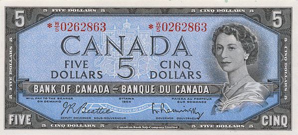 1954 Issue. BC-39bA. Beattie-Rasminsky. No. *W/S0262863. PCGS graded CH UNC-64PPQ.
