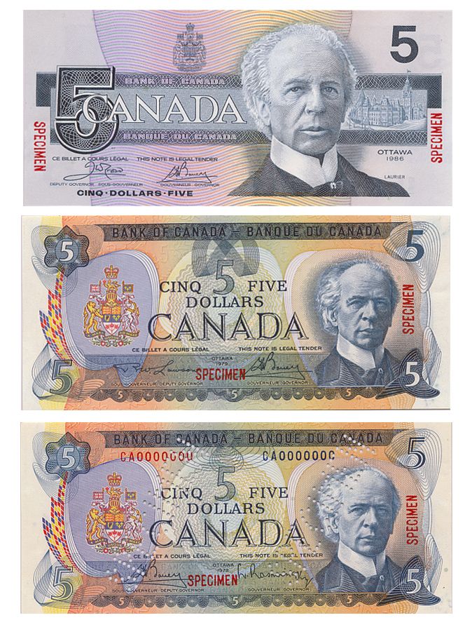 x1972 Issue. BC-48aS. $5.00. 1979 Issue. BC-53aS. $5.00. 1986 Issue. BC-56aS. Lot of three (3) SPECIMENS. All AU.