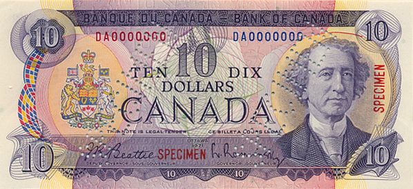 1971 Issue. BC-49aS. A Specimen. Serial No. DA0000000. Set No. 344. Punch cancelled ‘SPECIMEN’ twice in body of specimen. Overprinted ‘SPECIMEN’ vertically in red at right. Unc.